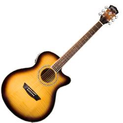 Washburn EA15ATB Festival Series Mini Jumbo Cutaway 6 String RH Acoustic Electric Guitar in Flame Maple - See Description
