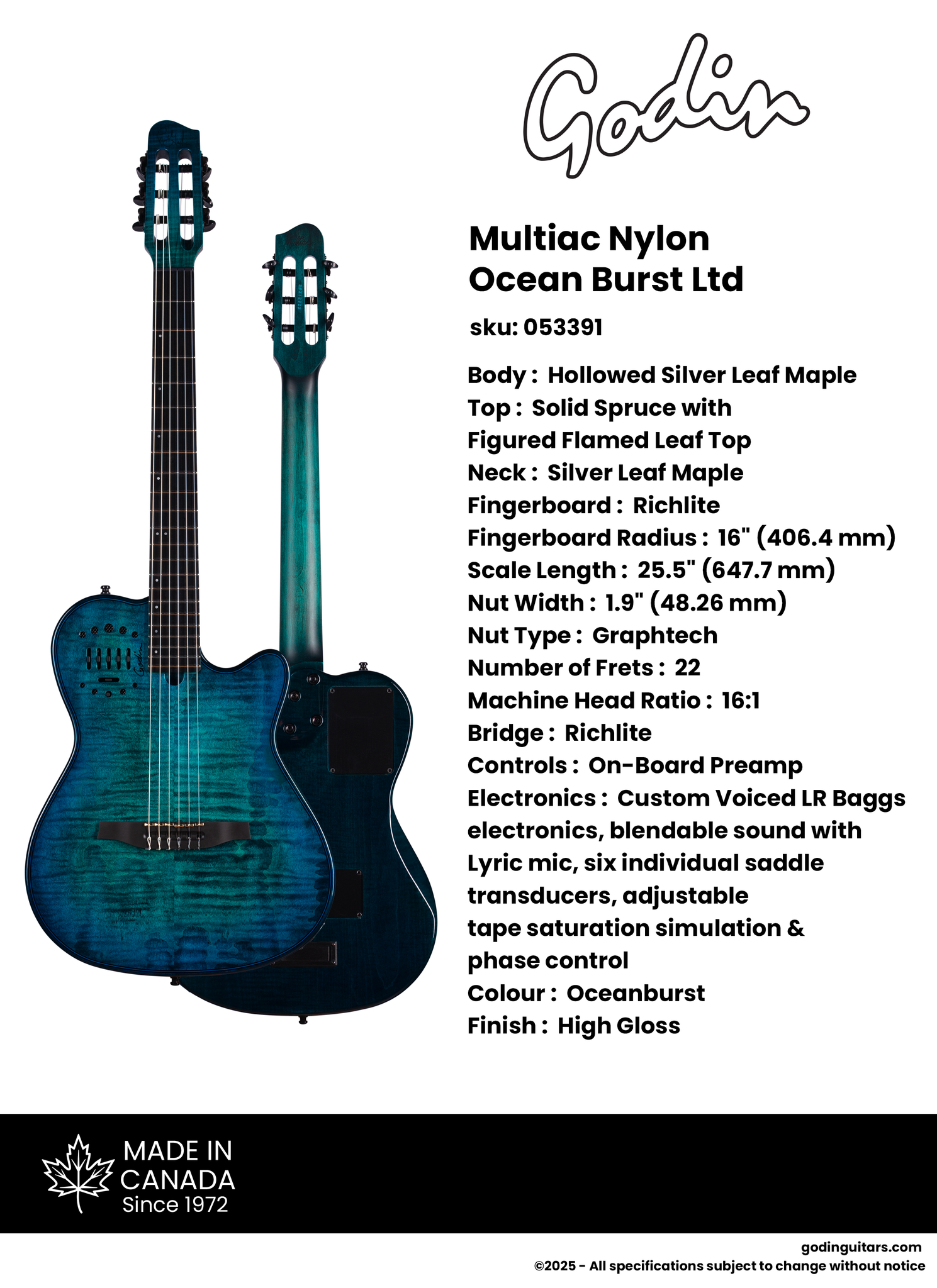Godin 053391 Multiac Nylon Oceanburst Ltd Classical Guitar -MADE In Canada