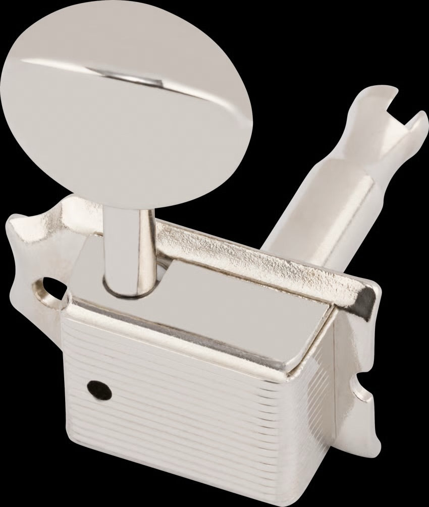 Set of six nickel tuners designed to fit most vintage-style Fender electric guitars. Used on various Stratocaster®, Telecaster®, Jazzmaster®, Jaguar®, Cyclone and Toronado guitars.
