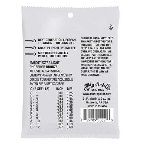 Next generation Martin® Authentic Acoustic® Lifespan® 2.0 strings are engineered using a new, patented anti-corrosion treatment only available from Martin. It protects the core and wrap wire to prevent corrosion without compromising tone or feel. Our impeccable standards for acoustic guitar tone are embedded in our string design and precision manufacturing process. That’s why we make our own.