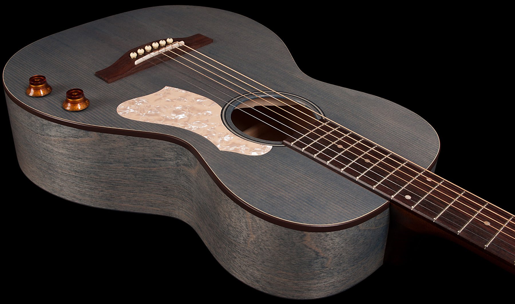 Building on the Roadhouse's reputation of being the ultimate travel companion, the Art & Lutherie 047079 Roadhouse Denim Blue Q-Discrete offers entirely new playability and style for players looking for a compact, stylish, and resonant parlor acoustic.