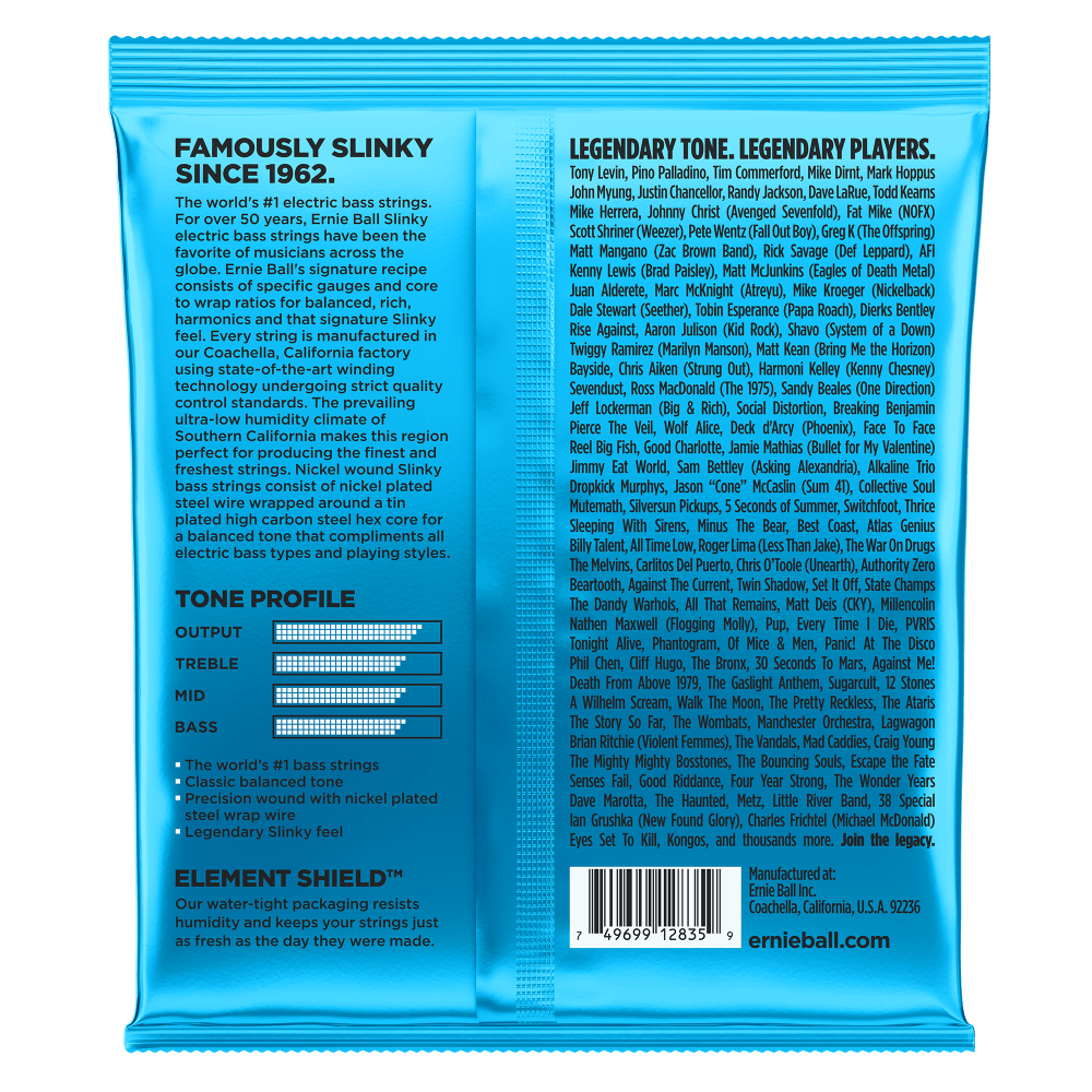 Ernie Ball Nickel Wound Electric Bass Strings are made from nickel plated steel wrapped around a hex shaped steel core wire. Each bass guitar string produces a bright, balanced tone and is manufactured with the finest and freshest raw materials in the beautiful Coachella Valley of Southern California. Gauges .040, .060, .070, .095