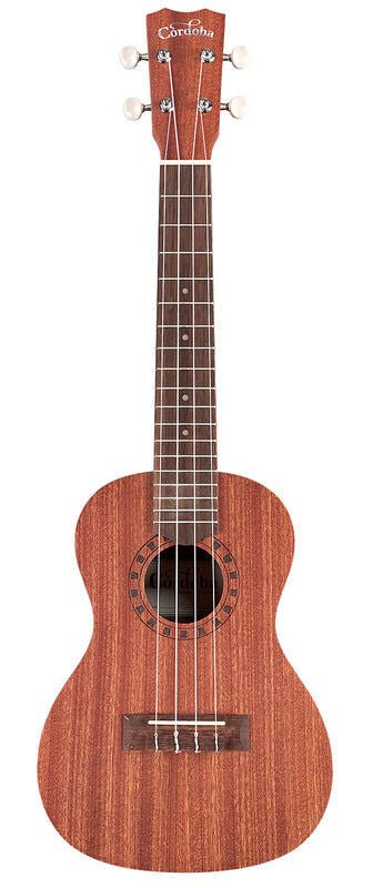 The Córdoba Ukulele Player Pack Concert features a concert-sized, all-mahogany ukulele with a light, breathable satin finish.