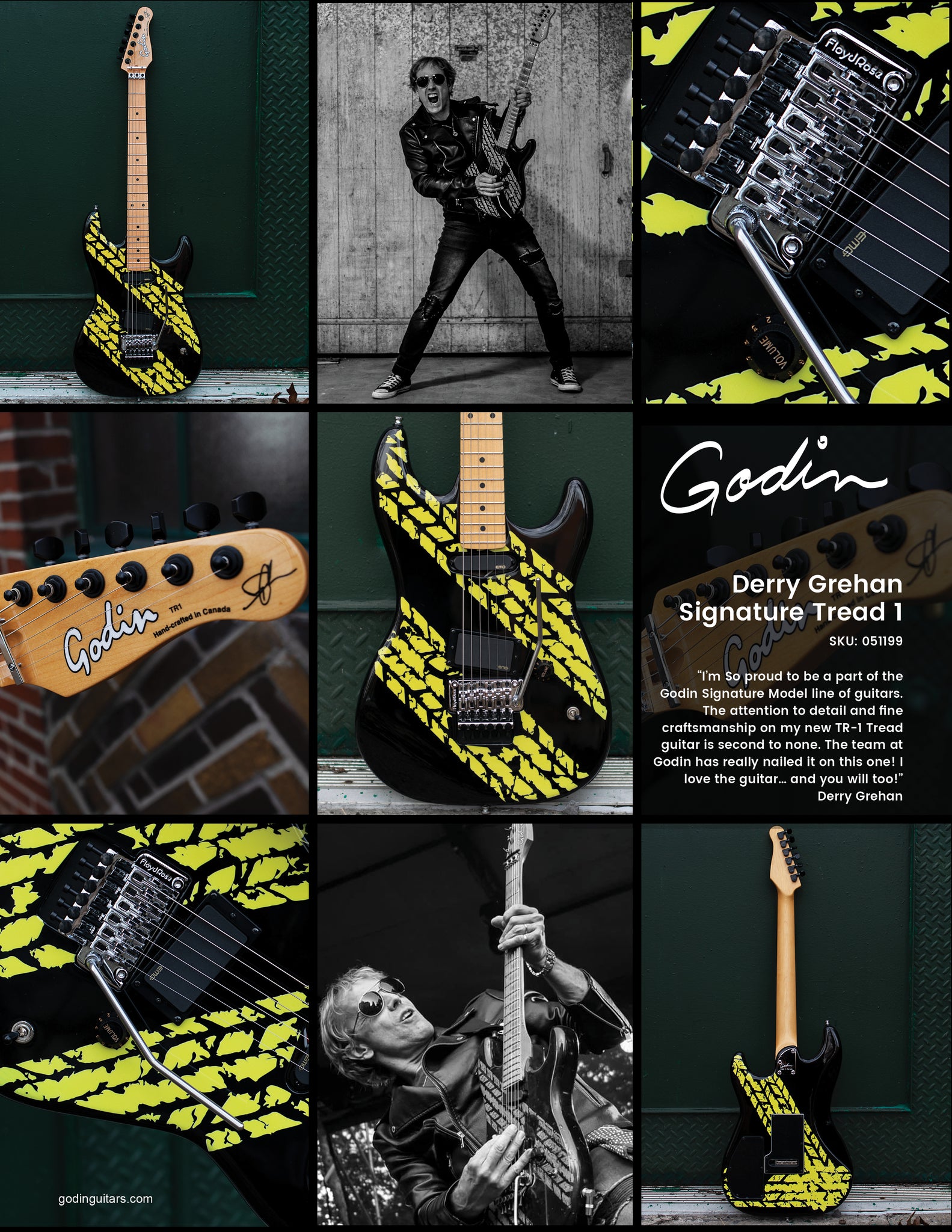 “I’m So proud to be a part of the Godin Signature Model line of guitars. The attention to detail and fine craftsmanship on my new TR-1 Tread guitar is second to none. The team at Godin has really nailed it on this one! I love the guitar…..and you will too!” Derry Grehan.