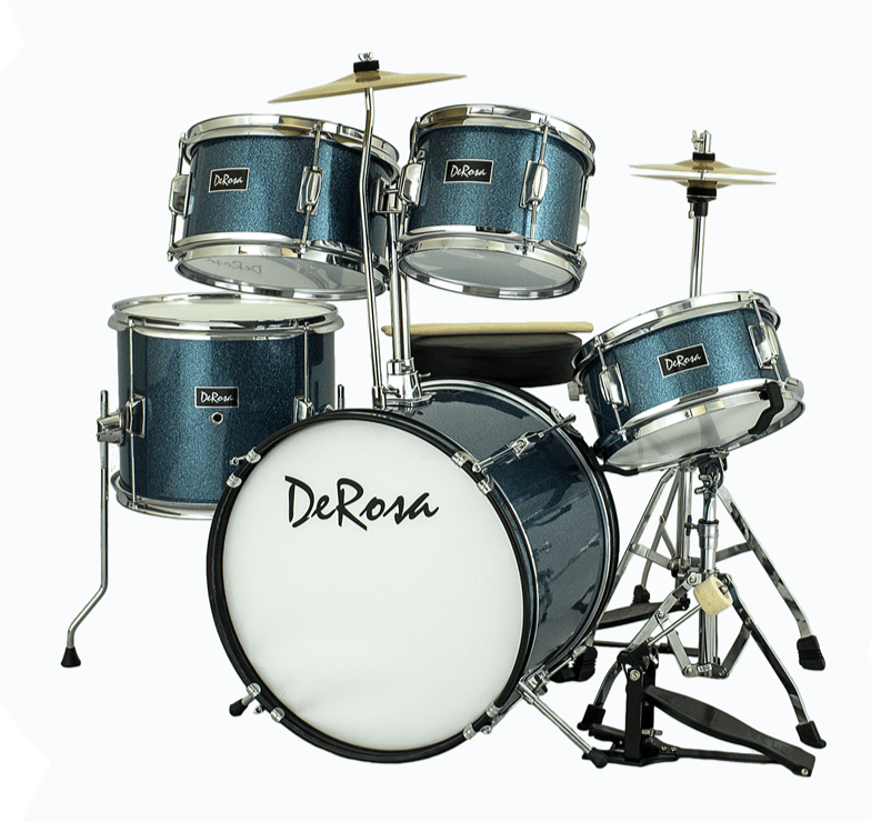 This DeRosa kids drum is perfect for kids 3 to 8 years old. And its durable quality will hold up to your child's playing. With real birch wood shells, fully tunable top and bottom heads and black plated real metal hardware!