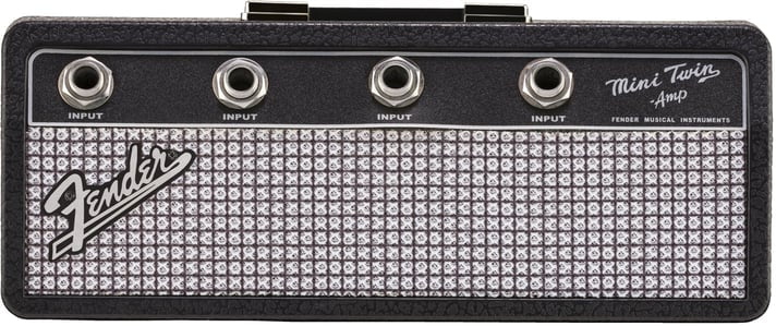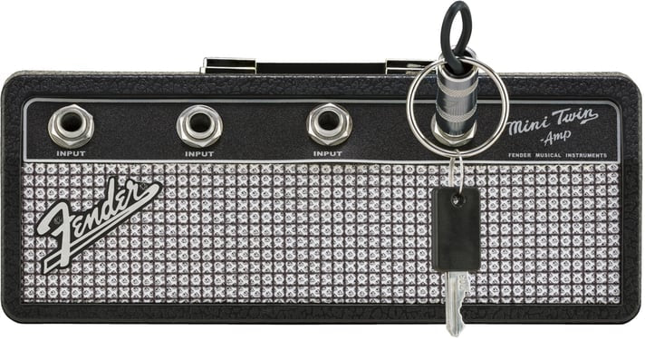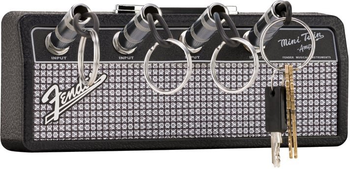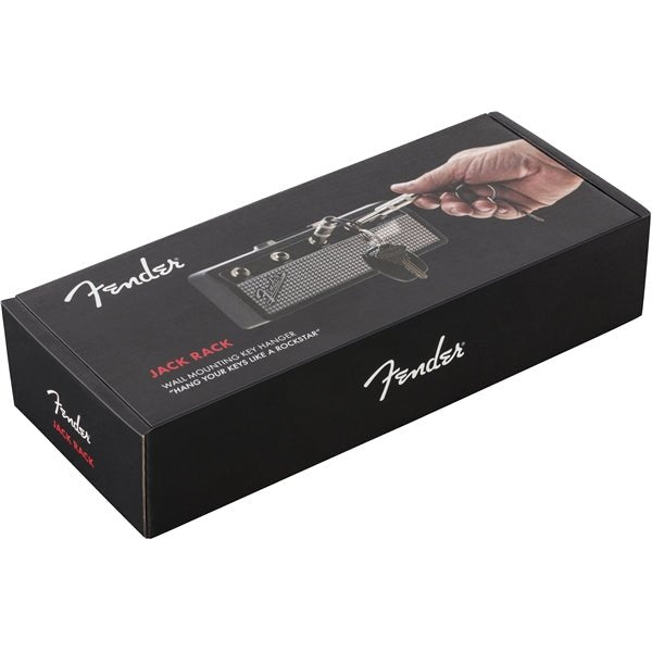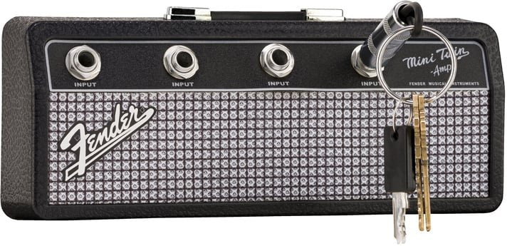 Hang your keys like a rockstar with the Fender® Jack Rack! Comes with a sleek finish, comprised of real amp materials, 4 Fender® guitar plug keychains, and 1 wall mounting kit