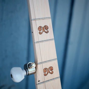 The blonde maple fingerboard is adorned with beautiful exotic hardwood Artisan-style inlays, while the peghead features a stunning complementary motif inlay and a "Goodtime LTD" banner logo.