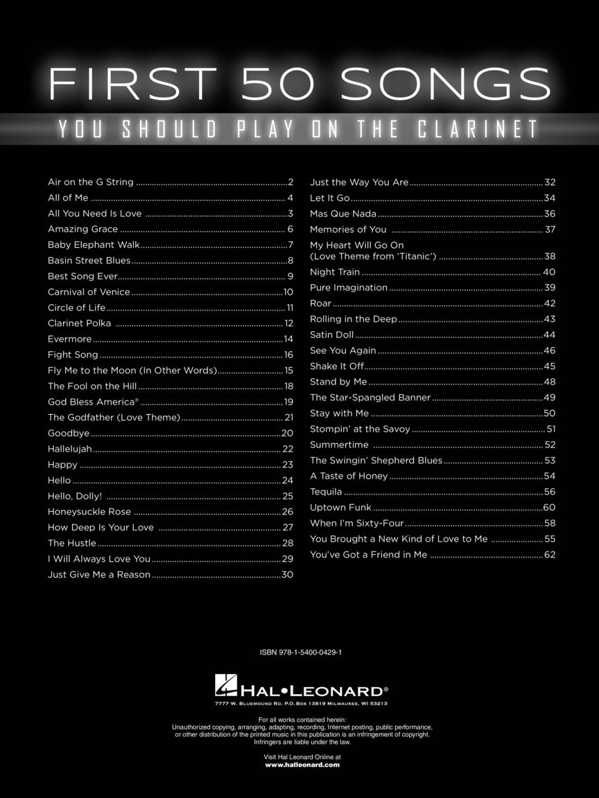 FIRST 50 SONGS YOU SHOULD PLAY ON THE CLARINET