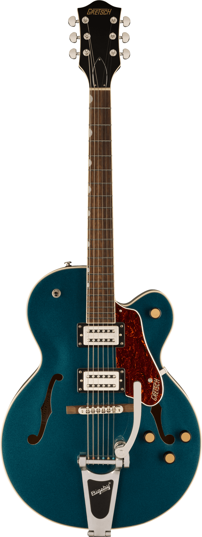 The G2420T Streamliner Hollow Body Single-Cut with Bigsby® is designed for the modern guitarist who yearns for something beyond the norm. A commanding guitar for powerful players, the G2420T's modern sonics, updated electronics and authentically elegant style create the latest iteration of That Great Gretsch® Sound!™