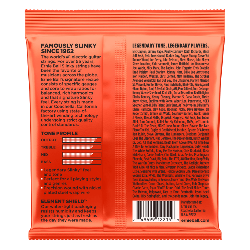 Ernie Ball Nickel Wound Electric Guitar Strings are made from nickel plated steel wire wrapped around tin plated hex shaped steel core wire. The plain strings are made of specially tempered tin plated high carbon steel producing a well balanced tone for your guitar. Gauges .010, .013, .017, .030, .042, .052