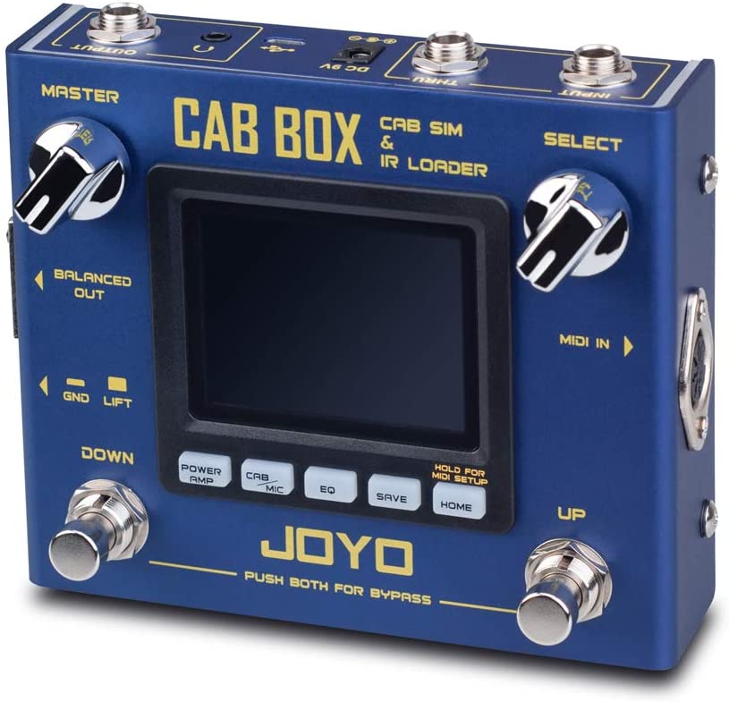 JOYO CAB BOX is a cabinet modeling pedal, with IR loading supported. It has 4 tube power amp simulations, 20 cabinet models and 11 classic microphone models. Regarding the IR, apart from 20 preset loading locations, it also supports storing 10 third party IRs, you can connect to the PC through the USB, and use the matching software to edit tones and update firmware, load or delete third party IRs. JOYO CAB BOX has more interface, much bigger screen with more buttons compared with rival’s similar products, it’s quite user-friendly.