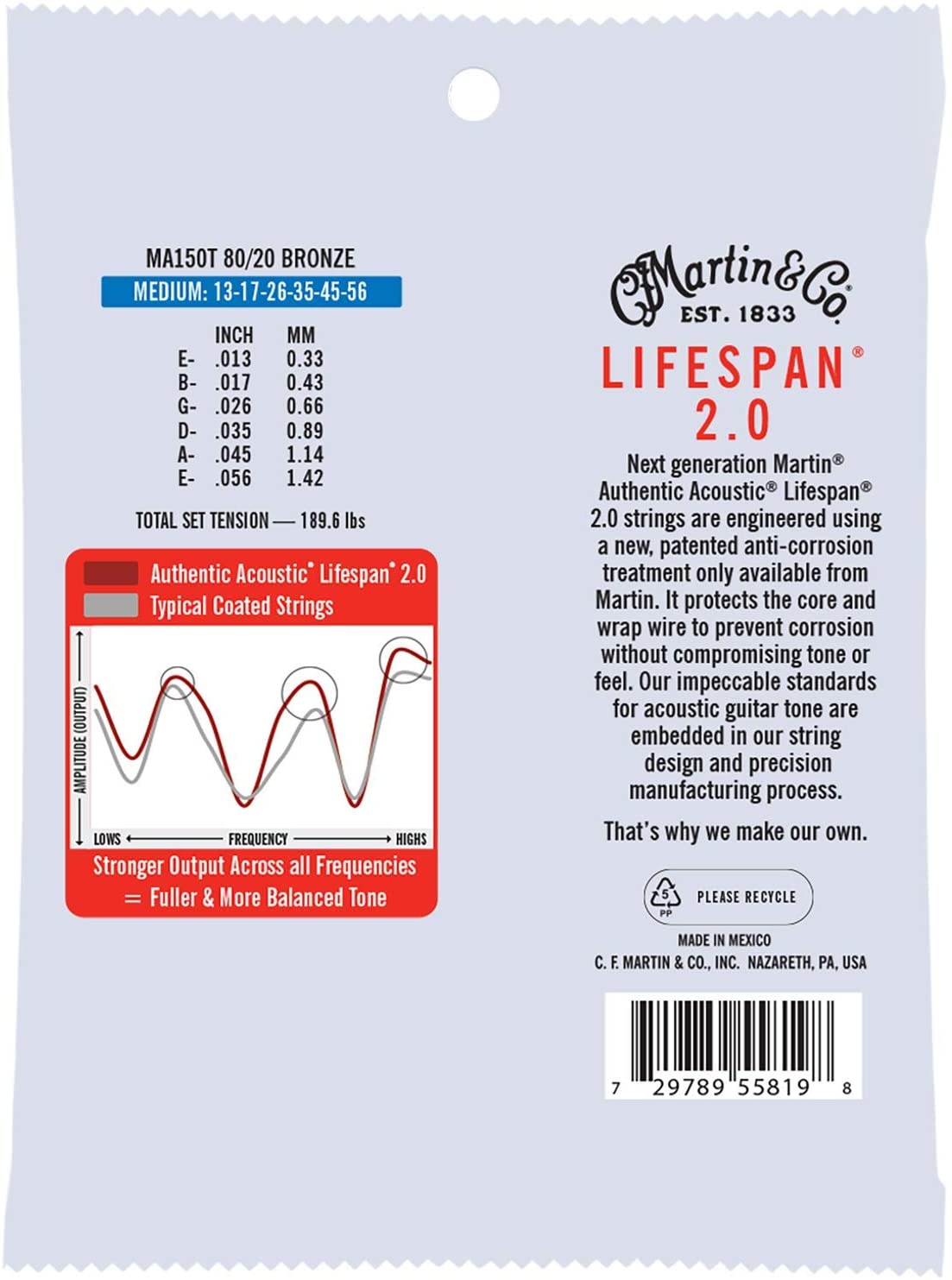 Next generation Martin® Authentic Acoustic® Lifespan® 2.0 strings are engineered using a new, patented anti-corrosion treatment only available from Martin. It protects the core and wrap wire to prevent corrosion without compromising tone or feel. Our impeccable standards for acoustic guitar tone are embedded in our string design and precision manufacturing process. That’s why we make our own.