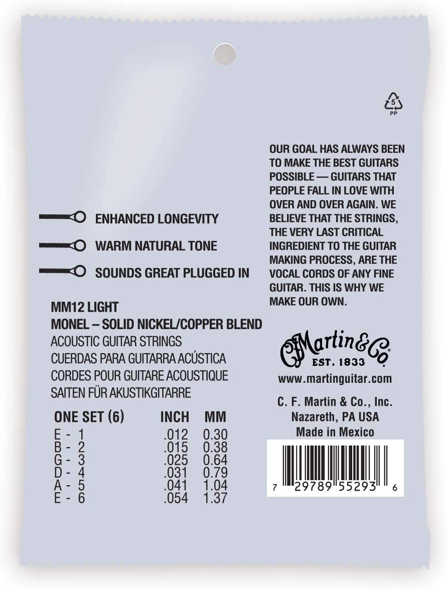 | Extra Light 12-String | .010/.010 | .013/.013 | .023/.010 | .029/.012 | .038/.018 | .047/.027 | 255.5 | MM1012 |