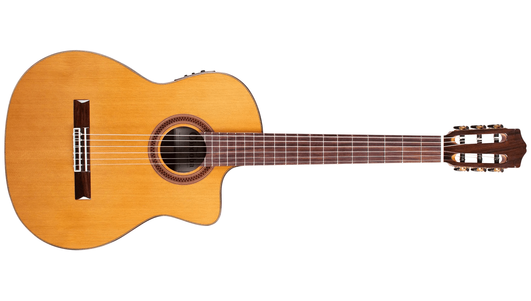 Featuring a solid Canadian Cedar top and Rosewood back and sides, the C7-CE adds a soft cutaway and Fishman Preamp to its sister model, the C7, and is a wonderful choice for beginner or intermediate guitarists who want to play on stage or record. The C7-CE's traditional fan bracing allows for maximum resonance and sustain offering a warm and well-balanced tone both acoustically or amplified through the Fishman Presys Blend preamp, which includes an under-saddle pickup and an internal microphone. Additional premium features such as a hand-inlaid wooden rosette, two-way adjustable truss rod, sleek high gloss PU finish, and on-board tuner makes this one of the best cutaway-electric nylon string guitars at this price.