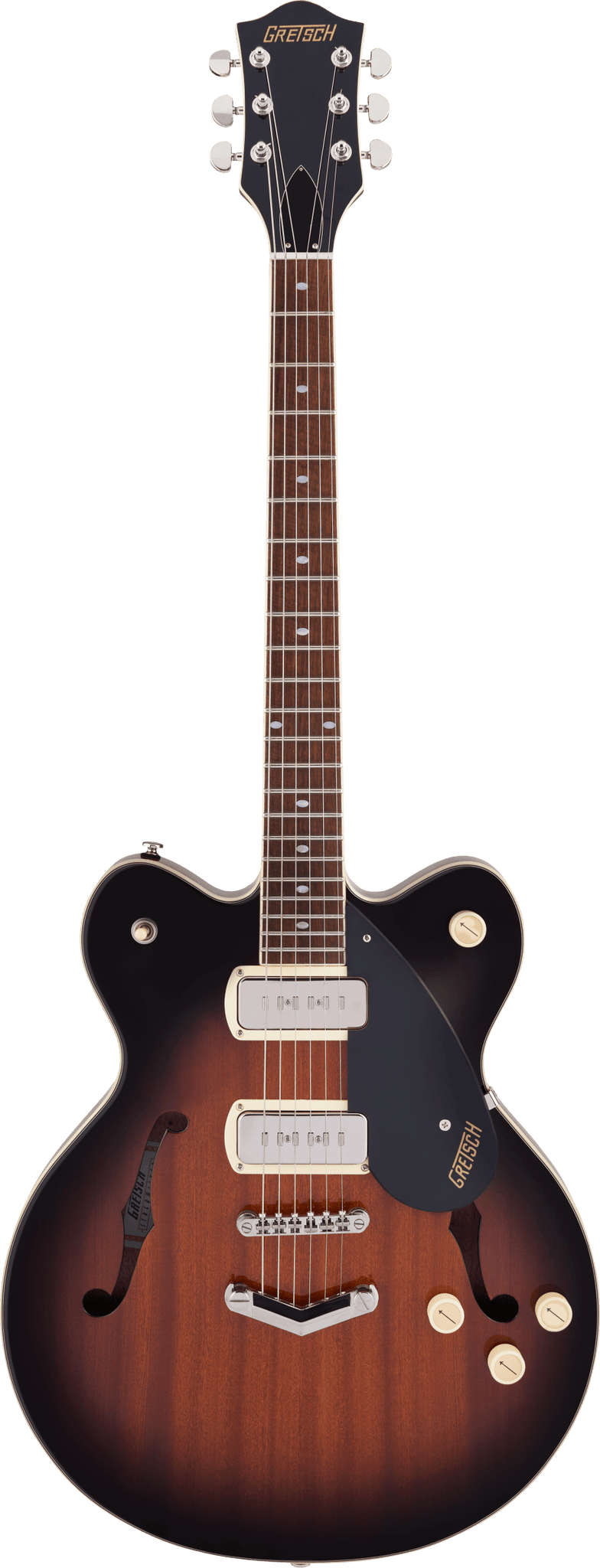 Classic '50s and '60s Gretsch eye-catching style is also here - all-new "radio arrow" control knobs, enlarged F-holes for increased acoustic projection, stylized pickup bezels, elegant aged white binding with upgraded purfling, one-ply black pickguard, slick-looking nickel hardware and standout finishes including Claret Burst and Havana Burst.