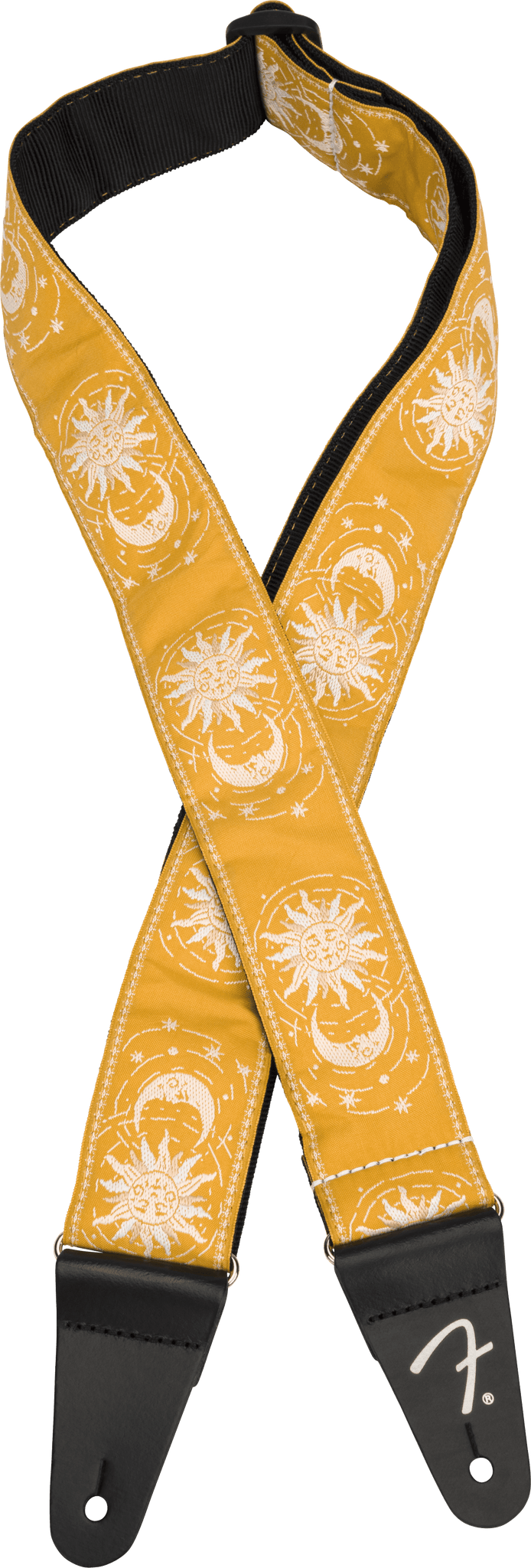 Bring out the bright, bold and beautiful colors of your guitar with the American Vintage II Sun Strap. Featuring a woven jacquard sun and moon design, this strap is fully adjustable strap and perfectly color matched to complement your favorite new Fender!