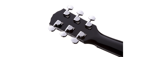 Upgrades include a new black pickguard and mother-of-pearl acrylic rosette design , rosewood bridge with compensated saddle, white bridge pins with black dots and smaller (3 mm) dot fingerboard inlays. Features include scalloped X bracing, black body binding, 20-fret fingerboard, dual-action truss rod and die-cast tuners.
