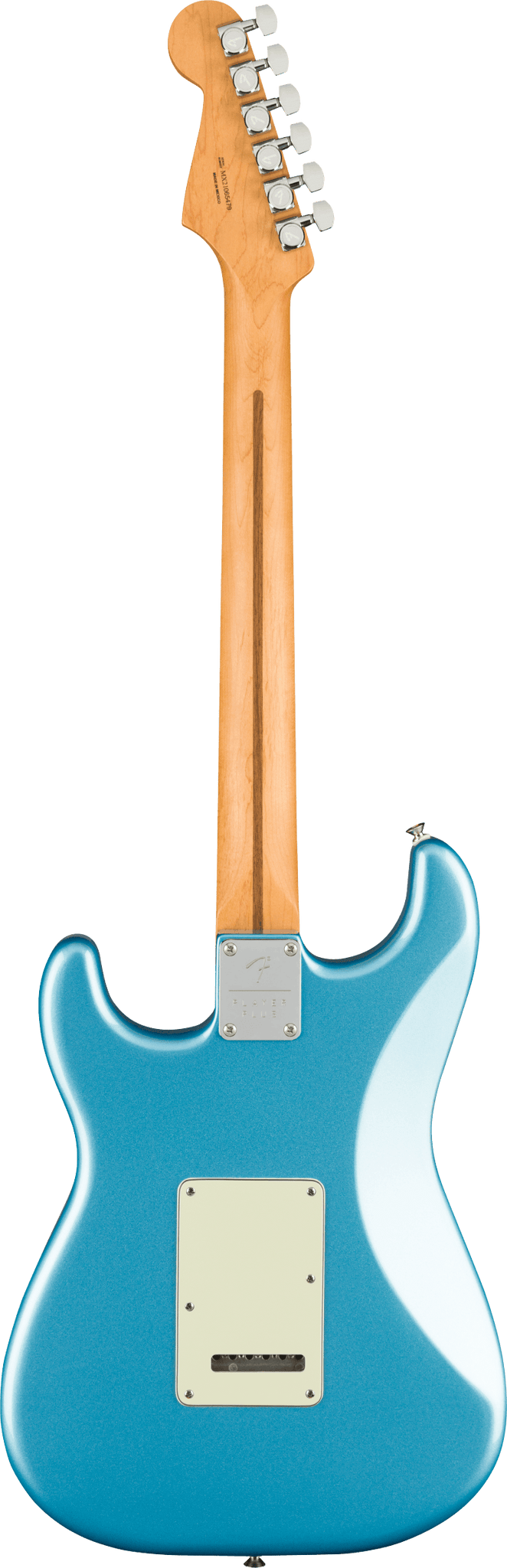 At the heart of this Strat® is a trio of Player Plus Noiseless™ pickups - bright and touch sensitive, they offer classic Strat tone without hum. A push-pull pot on the tone control adds the neck pickup to switch positions 1 and 2 for two sounds not usually found on a Strat®. The silky satin Modern "C" Player Plus Strat® neck fits your hand like a glove, with smooth rolled edges for supreme comfort. The 12" radius fingerboard and 22 medium jumbo frets facilitate fluid leads and choke free bends. Smooth and responsive, the 2-point tremolo provides classic vibrato effects, while the locking tuners provide rock-solid tuning and make string changes quick and easy.