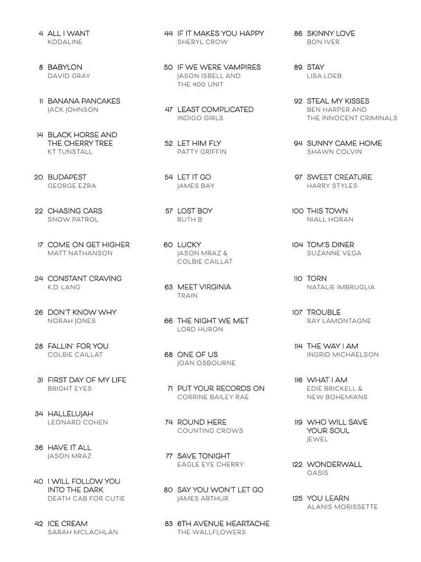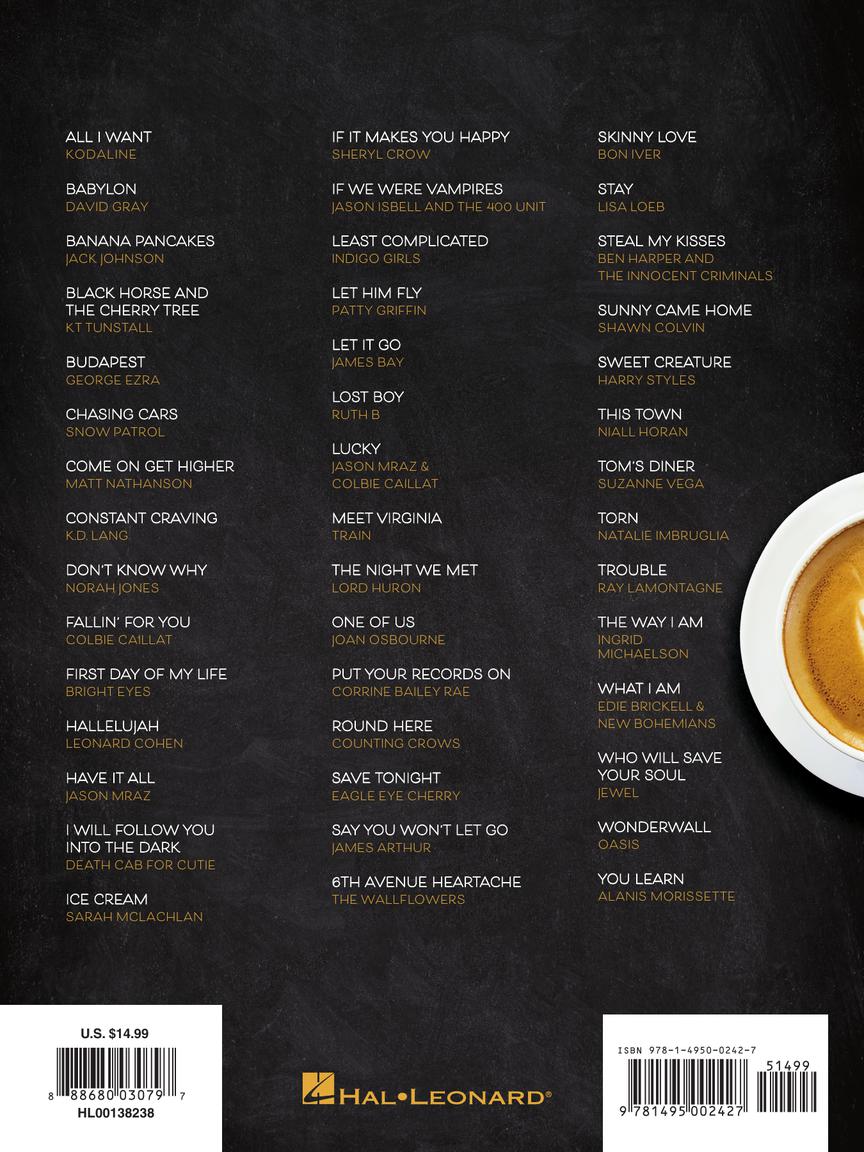 The perfect uke songbook for that next coffeehouse gig! This songbook includes lyrics, chord symbols and chord diagrams for 44 hit songs, including: Black Horse and the Cherry Tree • Constant Craving • Don't Know Why • Hallelujah • If It Makes You Happy • Lucky • Meet Virginia • One of Us • Put Your Records On • Save Tonight • Skinny Love • Tom's Diner • What I Am • Wonderwall • and more.