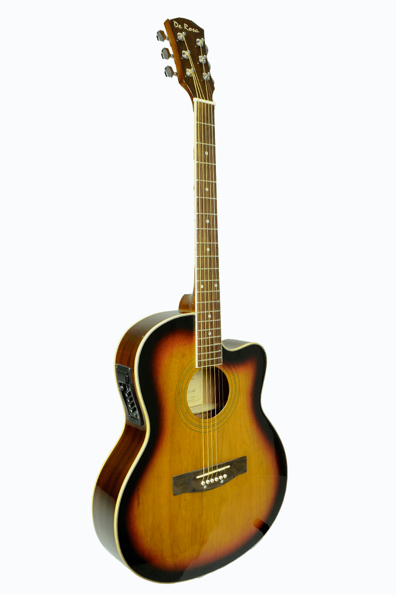 La guitare acoustique corps fin à cordes d'acier De Rosa est la guitare parfaite pour les débutants aux joueurs chevronnés, au juste prix. Un corps en forme d'auditorium avec une coupe de style moderne donne aux joueurs un accès facile aux frettes les plus hautes. Parallèlement à cela, cette guitare est fabriquée avec un corps plus fin pour le confort du joueur et en fait l'acoustique parfaite pour les joueurs croisés habitués à jouer de l'électrique pur.