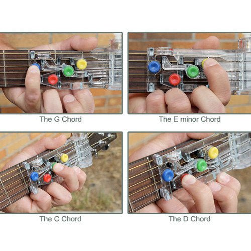 Notre système fonctionne sur les guitares acoustiques et électriques et vous aide à créer les accords mineurs C, D, G et E.