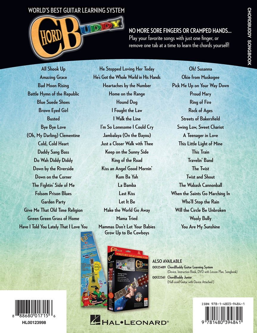 Chaque paquet comprend le ChordBuddy ainsi que des instructions sur la façon de fixer correctement l'appareil à votre guitare électrique ou acoustique. Le plan de cours de 2 mois et l'accès en ligne au DVD numérique compagnon vous permettront de jouer des chansons populaires en un rien de temps. Le ChordBuddy Pop Hits Songbook iand vous montre comment les jouer avec et sans le ChordBuddy. Le recueil de chansons ChordBuddy à code couleur comprend de nombreuses chansons à succès du passé et du présent, y compris des succès des genres country, bluegrass, gospel et rock-n-roll.