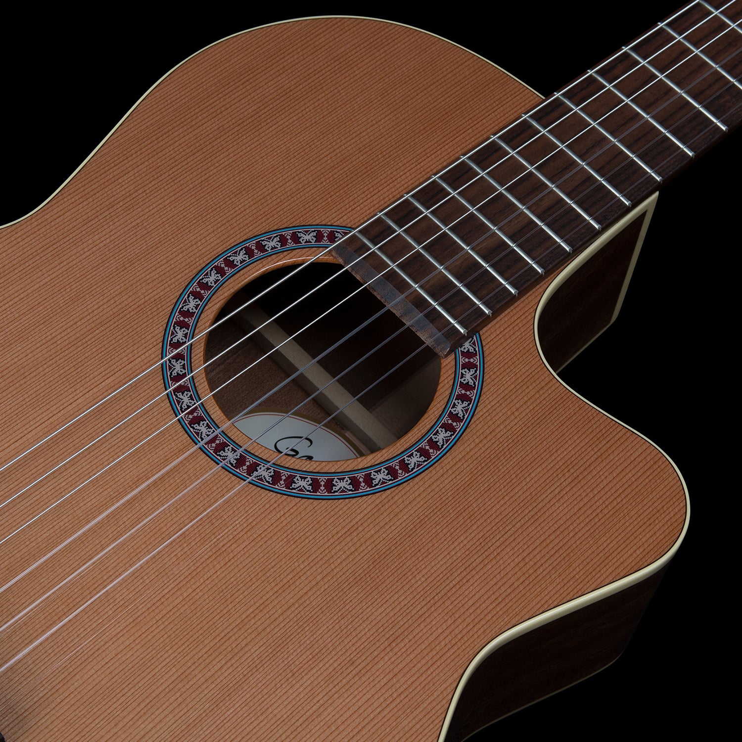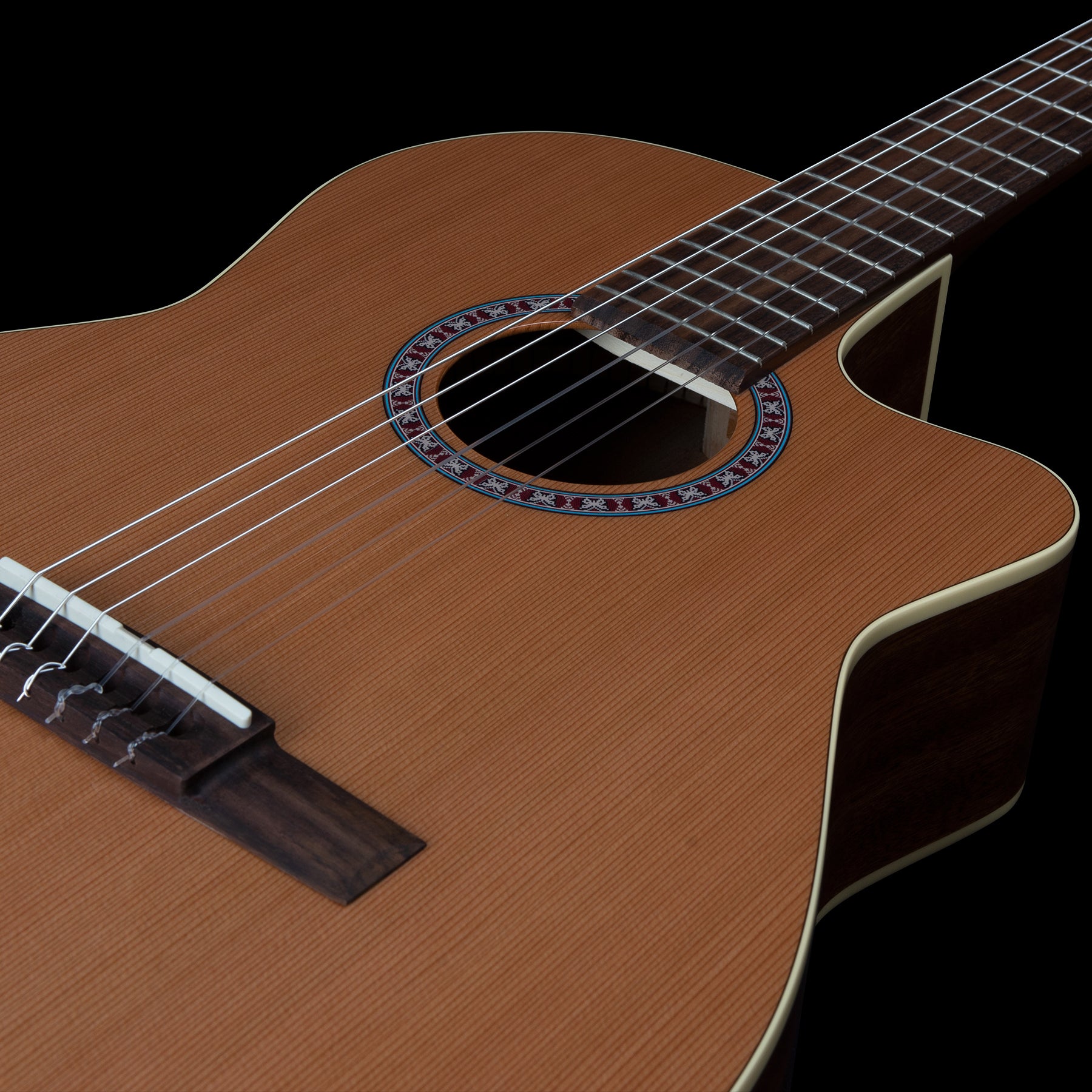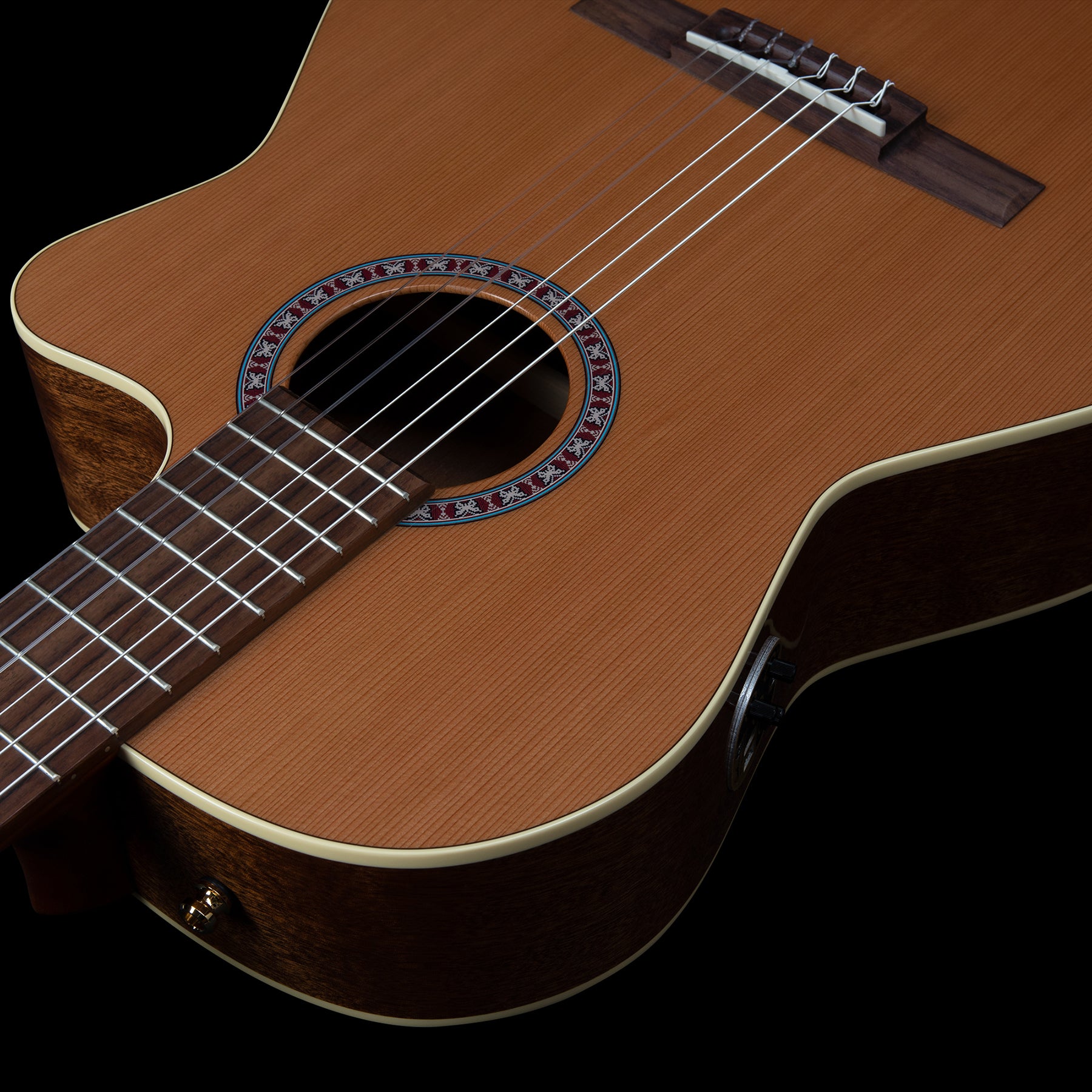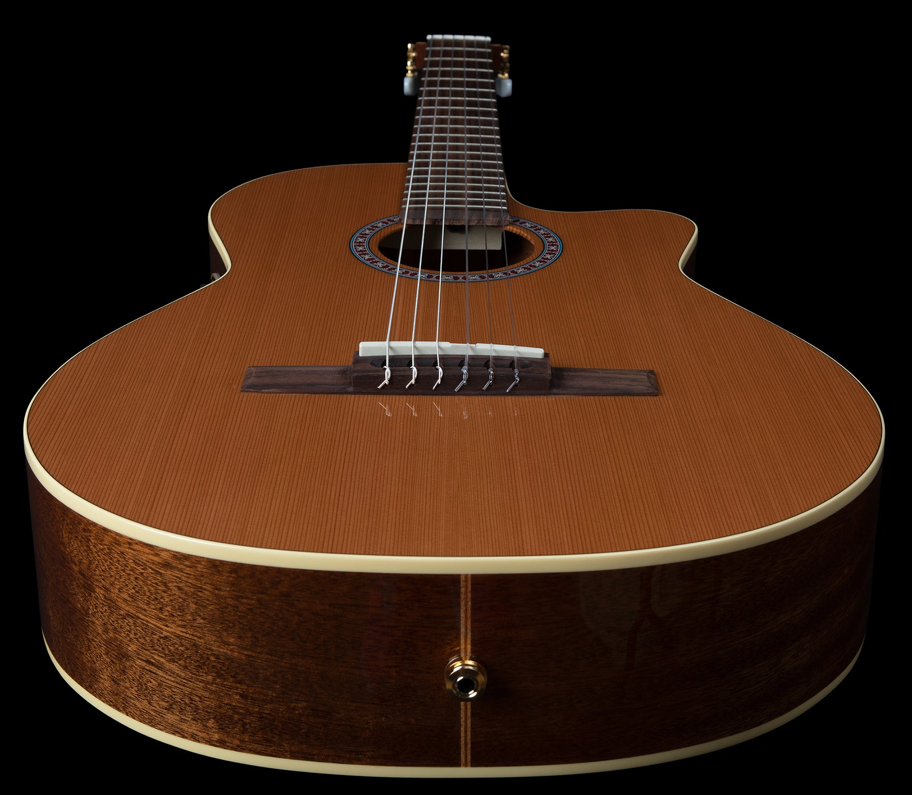 Le dos et les éclisses en acajou massif permettent à vos notes de résonner avec un sustain corsé qui résonnera non seulement dans le son, mais avec tout joueur à la recherche de guitares classiques à cordes en nylon. Une finition polie personnalisée très brillante garantit que l'instrument se démarquera et brillera, tandis que la touche en palissandre est agréable lorsque vous glissez de haut en bas sur le manche en acajou. Et avec le pan coupé de la guitare, il est facile de jouer des notes plus aiguës. Ceux qui recherchent une excellente guitare classique de niveau intermédiaire n'ont pas besoin de chercher plus loin que la Concert CW.