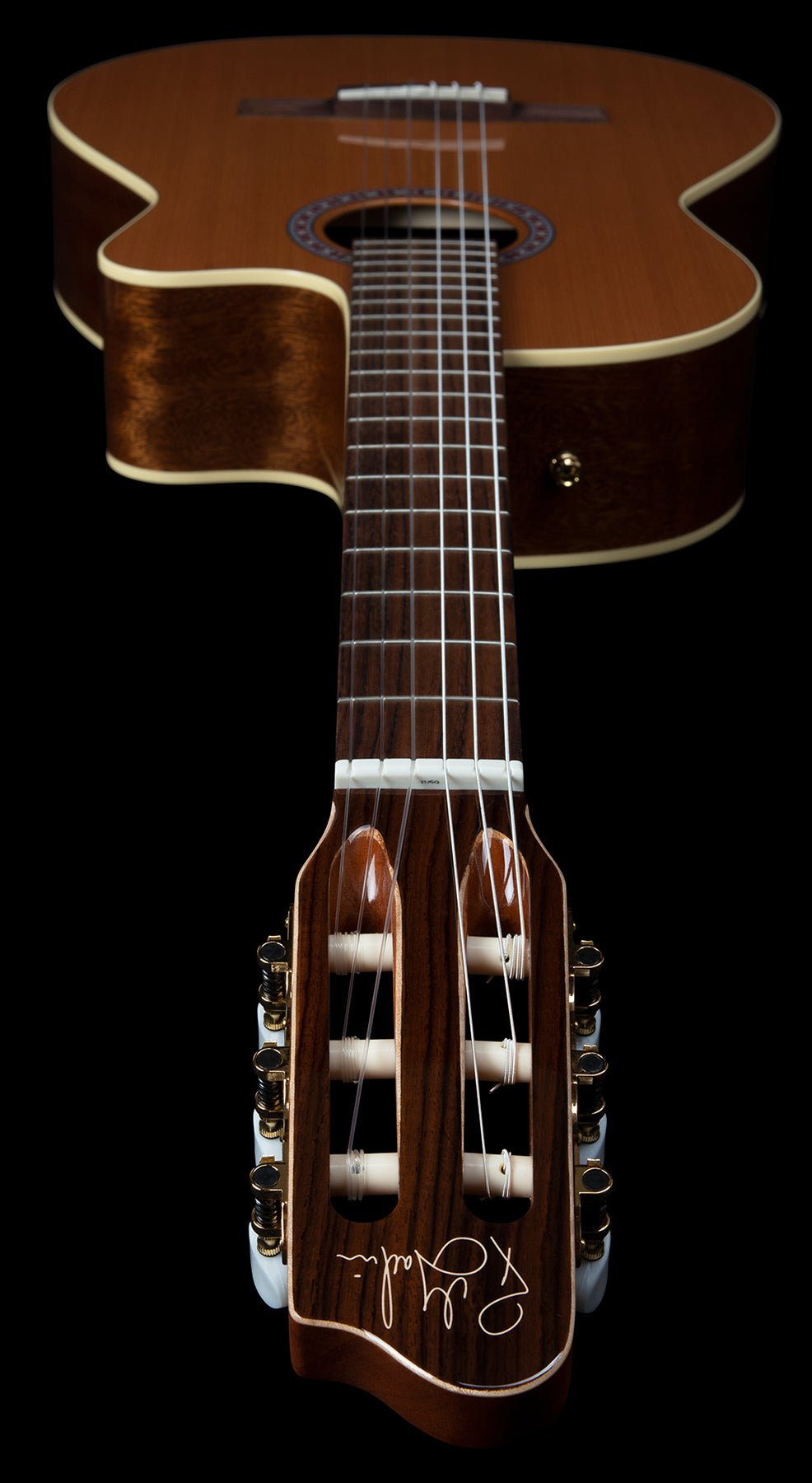 Les guitares classiques du passé étaient généralement fabriquées avec des dimensions de manche épaisses; bien que cela améliore la stabilité du manche, cela rend souvent le jeu plus difficile. Pour cette raison, une attention particulière a été portée à la conception du manche de ces guitares. La largeur du manche et l'espacement des cordes sont conformes aux standards classiques, mais le système de truss rod permet de réduire le profil du manche ce qui produit un manche d'un confort extraordinaire, tout en augmentant sa stabilité. Ces manches sont taillés dans de l'acajou du Honduras.