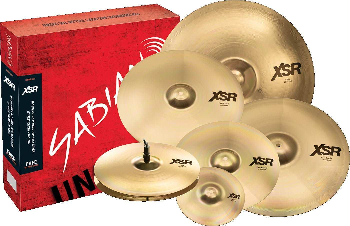 Fabriqué à partir de pur SABIAN B20 Bronze utilisant la technologie de ruissellement des cymbales Evolution et X-Plosion primées, XSR offre un son et des performances sans précédent à un prix conçu pour s'adapter à votre budget de cymbales. SABIAN XSR Super Set comprend notre XSR Splash 10" extra-fin, des chapeaux XSR 14" très réactifs, des XSR Fast Crashes 14", 16" et 18" polyvalents et efficaces, et un XSR Ride 20". XSR n'est pas une série économique, mais plutôt une gamme de cymbales à prix intelligents qui ne seraient pas déplacées sur n'importe quel kit de batterie, sur n'importe quelle scène.