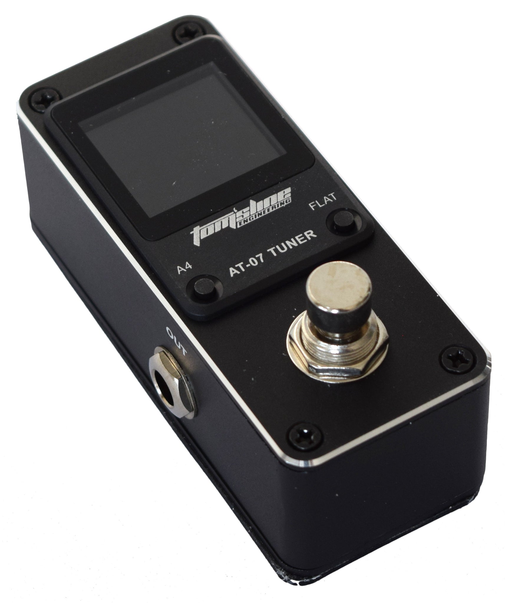 Screen shows note name, tuning meter and calibration, pitch and flats.