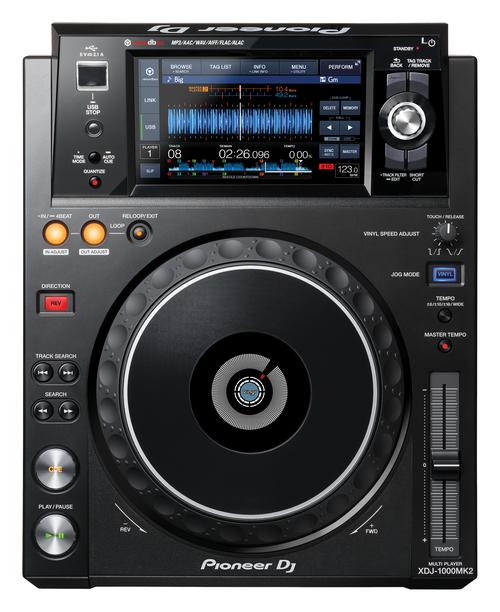 Pioneer's XDJ-1000MK2 USB-only multiplayer improves usability through enhanced track browsing and support for high-resolution FLAC and ALAC audio files. It inherits the large jog wheel and 7-inch, full-colour touch screen from the CDJ-2000NXS2, as well as features such as 8 Hot Cues and Quantize.