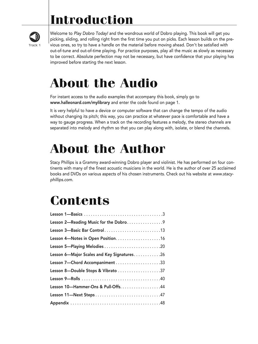 La méthode d'auto-apprentissage ultime conçue pour offrir un enseignement de qualité, des chansons formidables et un son de qualité professionnelle est désormais disponible pour Dobro® ! Ce pack de livres peut être utilisé par les étudiants qui souhaitent apprendre par eux-mêmes ou par les enseignants pour un enseignement privé ou en groupe. Suivez simplement les conseils et les leçons du livre pendant que vous écoutez 66 pistes de démonstration fournies en téléchargement ou en streaming en ligne. Vous apprendrez toutes les bases : jouer des mélodies ; accompagnement d'accords; doubles jeux et vibrato; Rouleaux; hammer-ons et pull-offs; et beaucoup plus! Apprenez à votre rythme et ouvrez la porte du monde de la musique Dobro® !