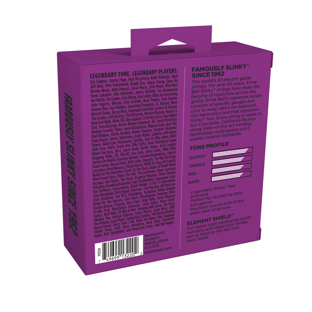 Désormais disponibles en packs pratiques de trois jeux, les cordes électriques Ernie Ball Power Slinky conviennent parfaitement à ceux qui aiment les rythmes volumineux pour le rock and roll ou le blues. Les Power Slinkys ont longtemps été favorisés par Slash, Metallica et Kenny Wayne Shepherd en raison de la combinaison de jauge plus épaisse fournissant un ton légèrement plus puissant. Ces cordes sont fabriquées avec précision selon les normes les plus élevées et les spécifications les plus exigeantes pour assurer la cohérence, des performances optimales et une longue durée de vie. Les cordes enroulées Power Slinky sont fabriquées à partir de fil d'acier nickelé enroulé autour d'un fil d'âme en acier de forme hexagonale. Les cordes lisses sont fabriquées en acier à haute teneur en carbone étamé spécialement trempé, produisant un son bien équilibré pour votre guitare. Calibres .011, .014, .018p, .028, .038, .048