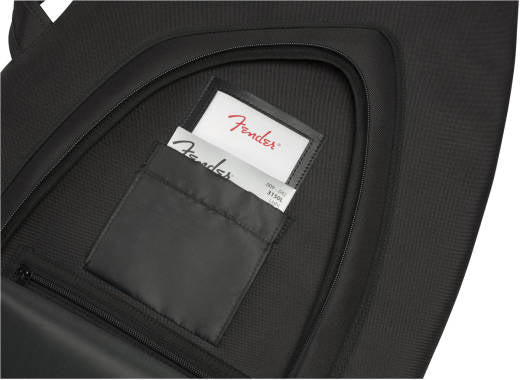 Fender's 610 Series gig bag is a stylish and affordable way to keep your electric guitar safe while traveling. Featuring the iconic asymmetrical Fender shape, its durable outer layer is constructed of tough 600 Denier polyester that protects against impacts while avoiding ripping and tearing. Its interior is filled with 10mm padding and lined with soft touch microfiber that keeps your instrument secure while preventing potential finish damage. The 610 gig bag also comes with a comfortable two-piece handle and ergonomic air mesh backpack straps with easily adjustable ladder lock buckles, so you can comfortably carry your instrument without unnecessary physical strain. Plus, the front storage pocket offers additional storage space for small accessories and a business card window.