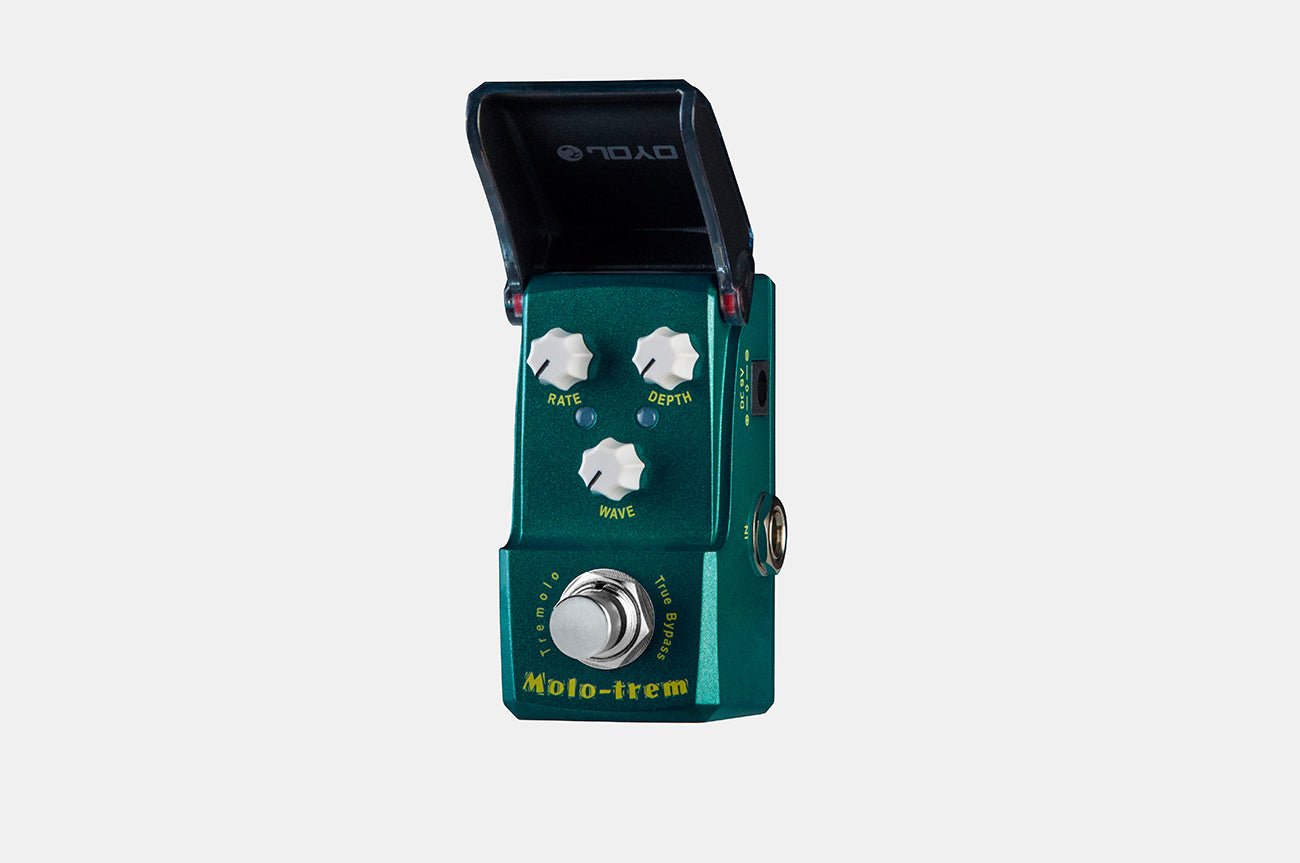 Le MoloTrem est un trémolo qui utilise un circuit photoélectrique, il sonne comme l'un des trémolos que l'on peut trouver dans les amplis à lampes vintage. Il est flexible mais facile à utiliser. Un simple contrôle à trois boutons permet de régler le taux (vitesse), la profondeur (de combien le volume fluctue-t-il) et l'onde. Le bouton Wave est très cool car vous pouvez le changer d'une onde triangulaire subtile à une onde carrée drastique. De cette façon, vous pouvez obtenir les sons de trémolo classiques que nous connaissons et aimons tous ainsi que les sons plus modernes de "bégaiement" pour créer des pads rythmiques incroyables, surtout s'ils sont combinés avec un son de retard cool. (Comme le retard FILTER de notre pédale QUATTRO)