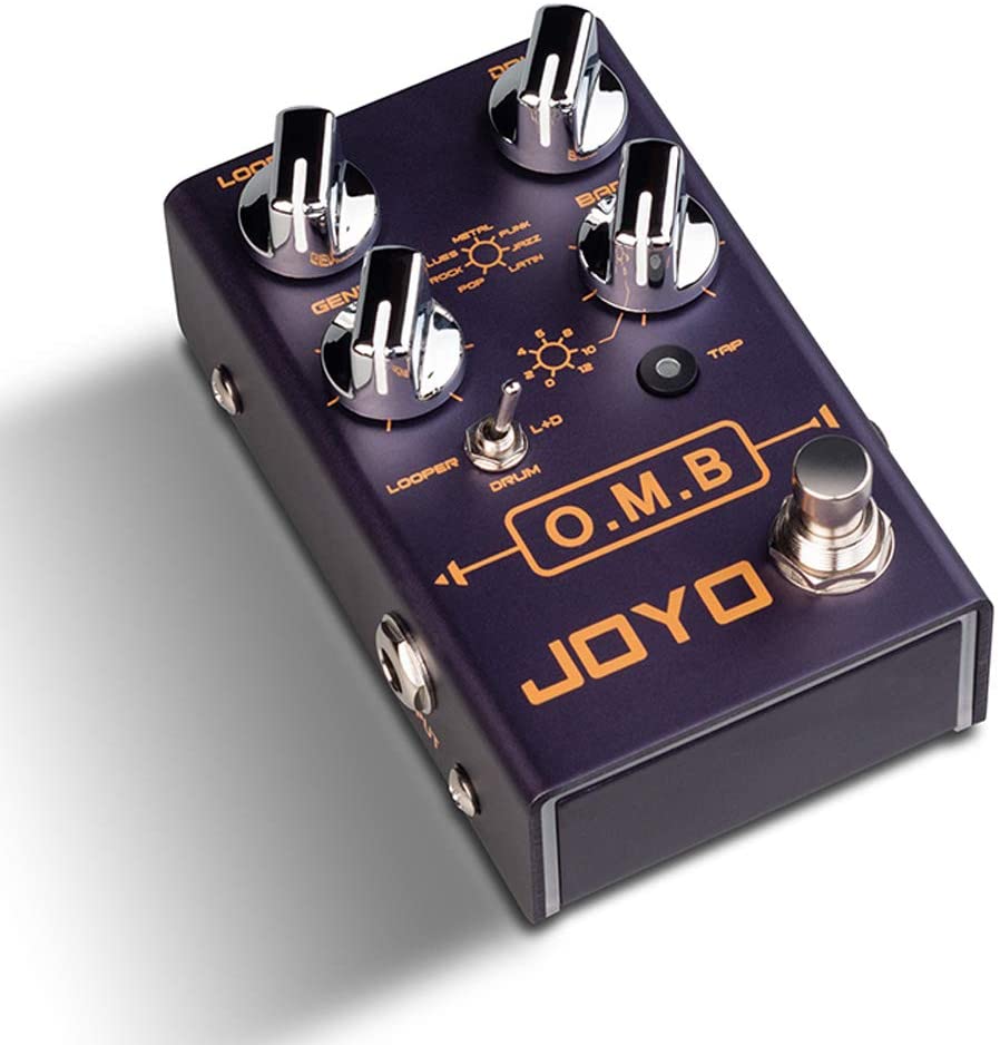 Une pédale comprend le mode d'enregistrement de cycle LOOPER, le mode boîte à rythmes indépendante et le mode LOOPER + batterie. Le mode LOOPER a une fonction d'alignement automatique et une fonction de décompte, une durée d'enregistrement de cycle de 40 minutes, un overdub illimité. En mode boîte à rythmes, vous pouvez choisir 7 genres de motifs de batterie et 7 rythmes de batterie, la vitesse des motifs de batterie peut être configurée par le bouton TAP TEMPO. De plus, OMB vous permet d'ajouter des remplissages, un remplissage outro peut être ajouté à la fin de chaque motif de batterie, alors essayez simplement votre One Man Band à votre guise.
