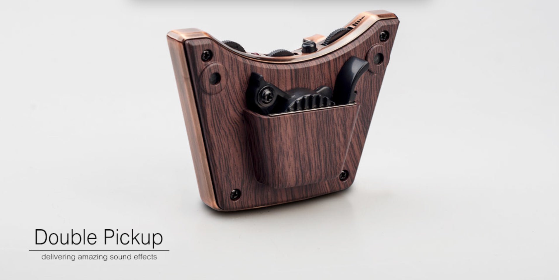 2. Double pickup, delivering amazing sound effects.GGP-01 adopts piezoelectric pickup and double microphones.The microphone can deliver subtle, mellow tone, for example, it delivers the tone of “acoustic guitar” quite well when you pluck the strings, the other sound effect of the microphone is ensuring the tapping sound is much deeper. The piezoelectric pickup is capable of picking up much wider audio frequency, amplifying circuit’s dynamic range excellently.