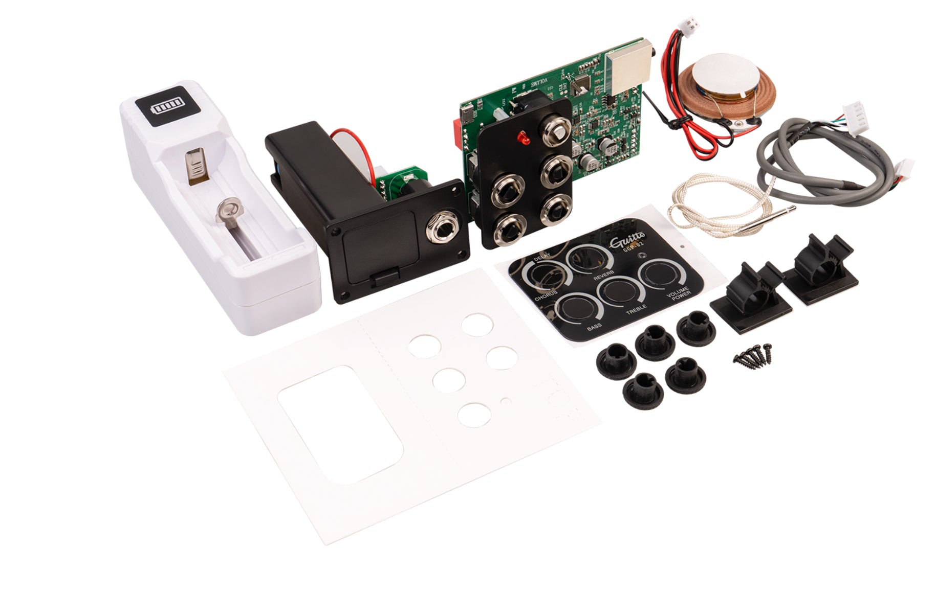 GGP-02 is a brand new pickup of GUITTO. It features various digital effects, vibrates through the speaker, mixes with the tone of your acoustic guitar, delivers REVERB/CHORUS/DELAY without connecting to amps, bringing out pleasant sound effects for your acoustic guitar.