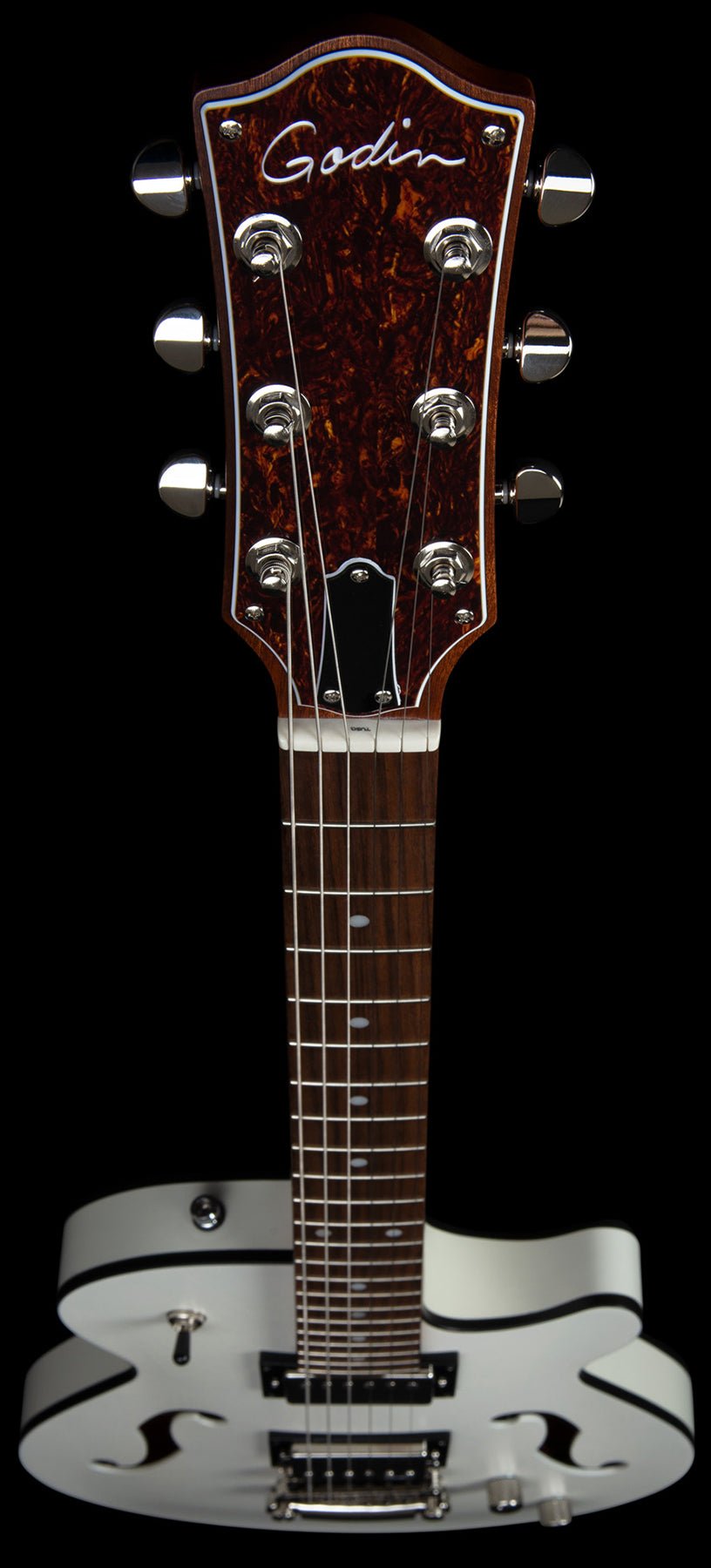 Godin 050222 est une première montréalaise HT 6 String RH Hollowbody Guitar in Trans White