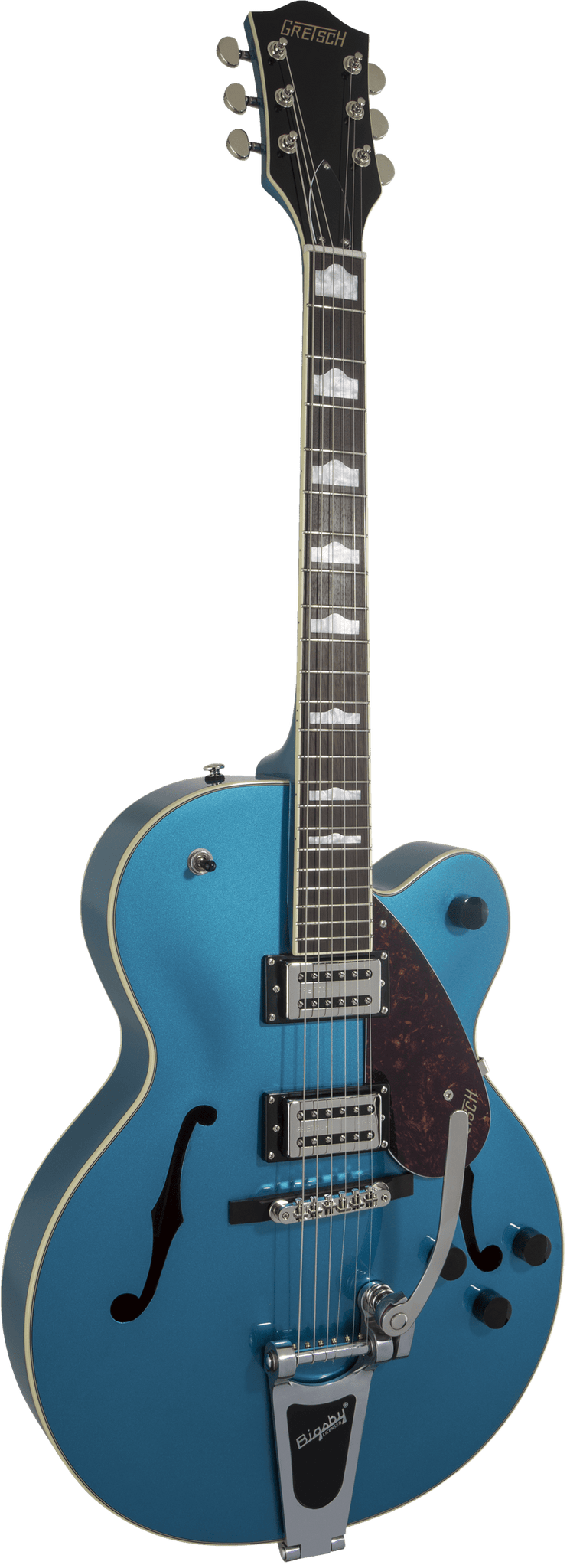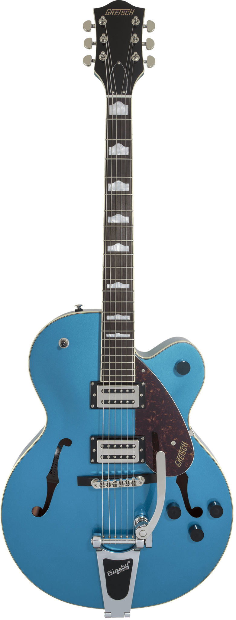 Big, bold and righteous, the G2420T Streamliner™ Hollow Body Single-Cut with Bigsby® is designed for the modern guitarist who yearns for something beyond the norm. A commanding guitar for powerful players, the G2420T's modern sonics, updated electronics and authentically elegant style create the latest iteration of That Great Gretsch® Sound!™