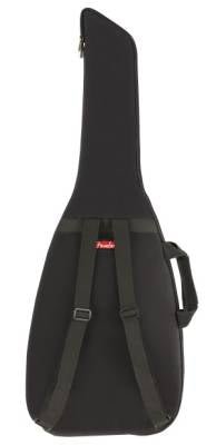 Fender's F405 Series gig bag is a stylish and affordable way to keep your electric guitar safe while traveling. Its durable outer layer is constructed of tough 400 Denier polyester that protects against impacts and also avoids ripping and tearing. Its interior is filled with 5mm padding lined with soft touch velour that keeps your instrument snug and secure while preventing potential finish damage. The F405 gig bag also comes with a comfortable two-piece handle and ergonomic backpack straps, so you can comfortably carry your instrument without any unnecessary physical strain. Plus, the front slip pocket offers additional storage for small accessories.