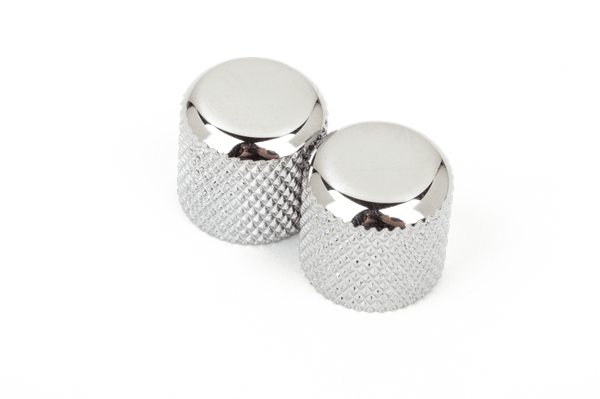 Package includes two knurled dome-top knobs with mounting set screws. Designed to fit 1/4" solid shaft potentiometers.