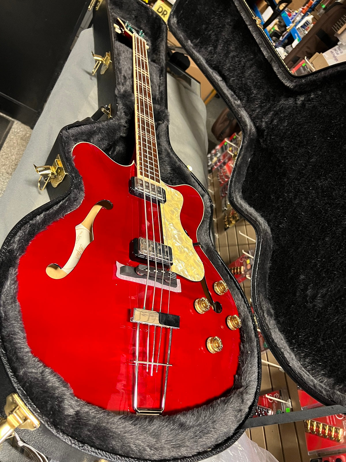 Hofner quality guitar case designed specifically for the Hofner Verythin Bass (500/7). Provides a snug fit for this ultra-thin bass. Black plush interior.