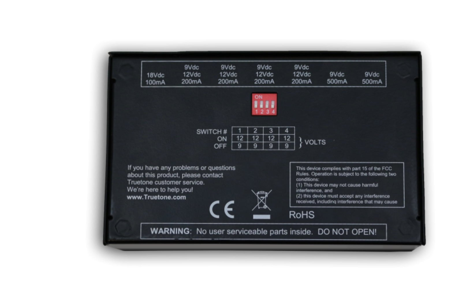 - 3 voltage options provide power for 99% of effect pedals