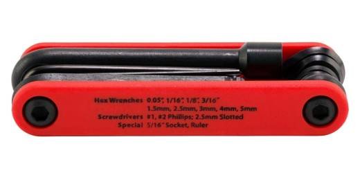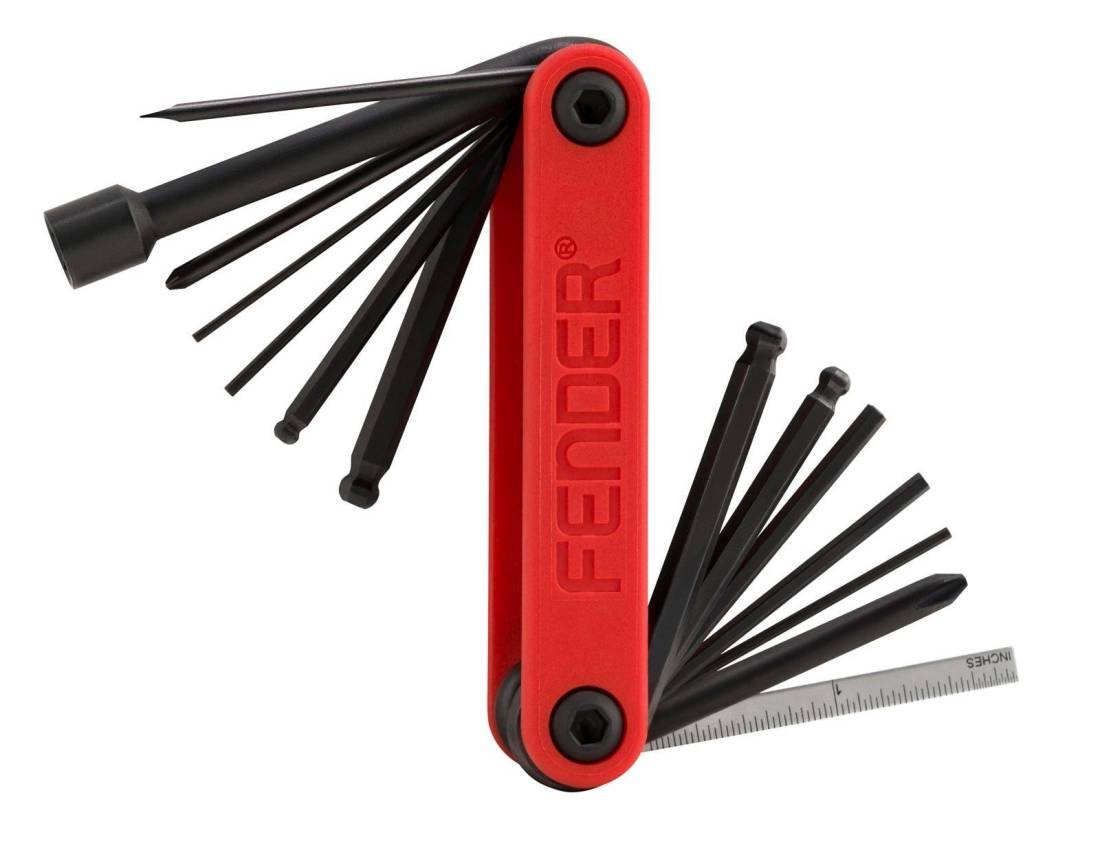 Fender's Guitar & Bass Multi-Tool is a 14-in-1 compact tool designed for use with Fender guitar/bass models. This took can also be used with virtually any other make or model. Its one-piece body allows for ease of use and rotation while the included truss rod size hex wrenches are ball end for easy access. Featuring inch and metric sizing, this multi-tool serves as a toolbox in your pocket, providing maximum functionality for all your instrument repair and tech work needs.