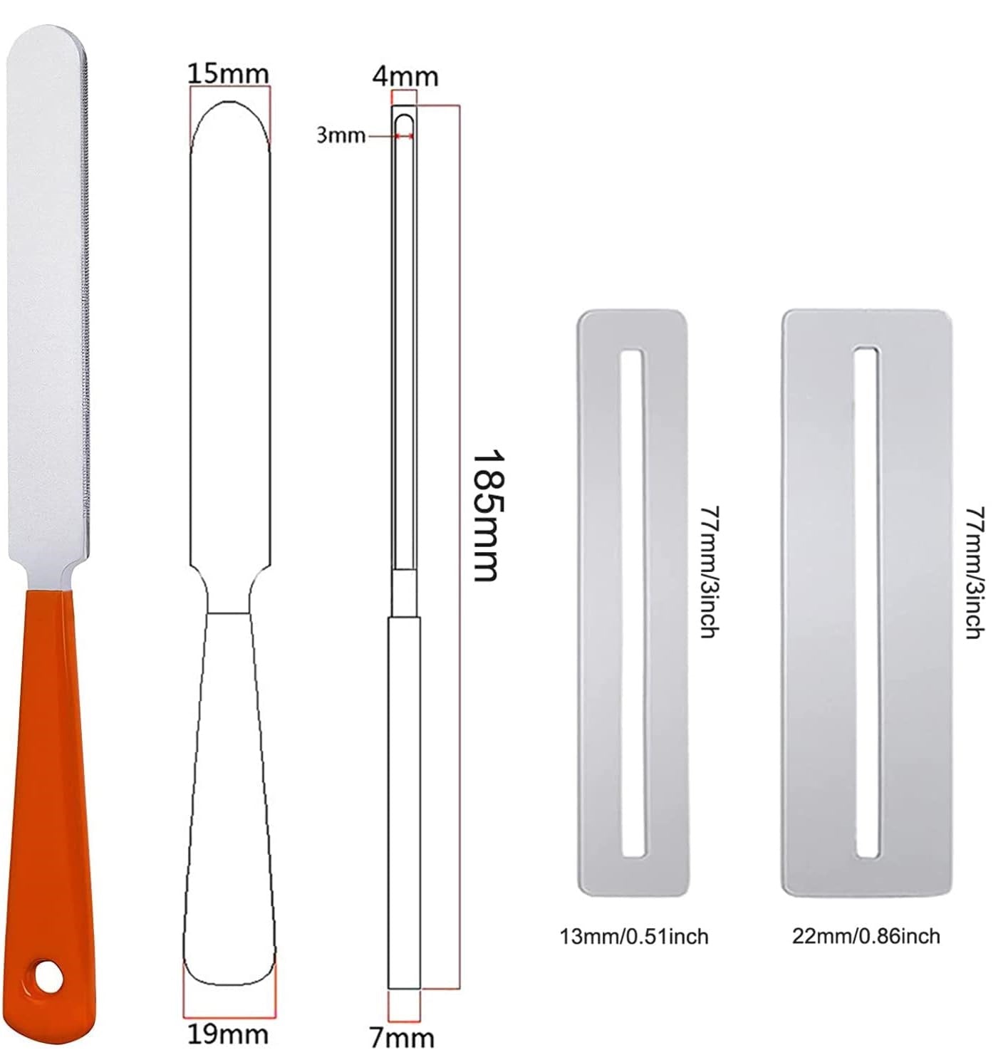 - Made of stainless steel, with ergonomic rubber handle for comfortable holding. Fits better in the grip of your hand, and it is easier to apply pressure, less likely to slip. Size: filing surface is 4 inches in length, rubber handle is 3.2 in length.