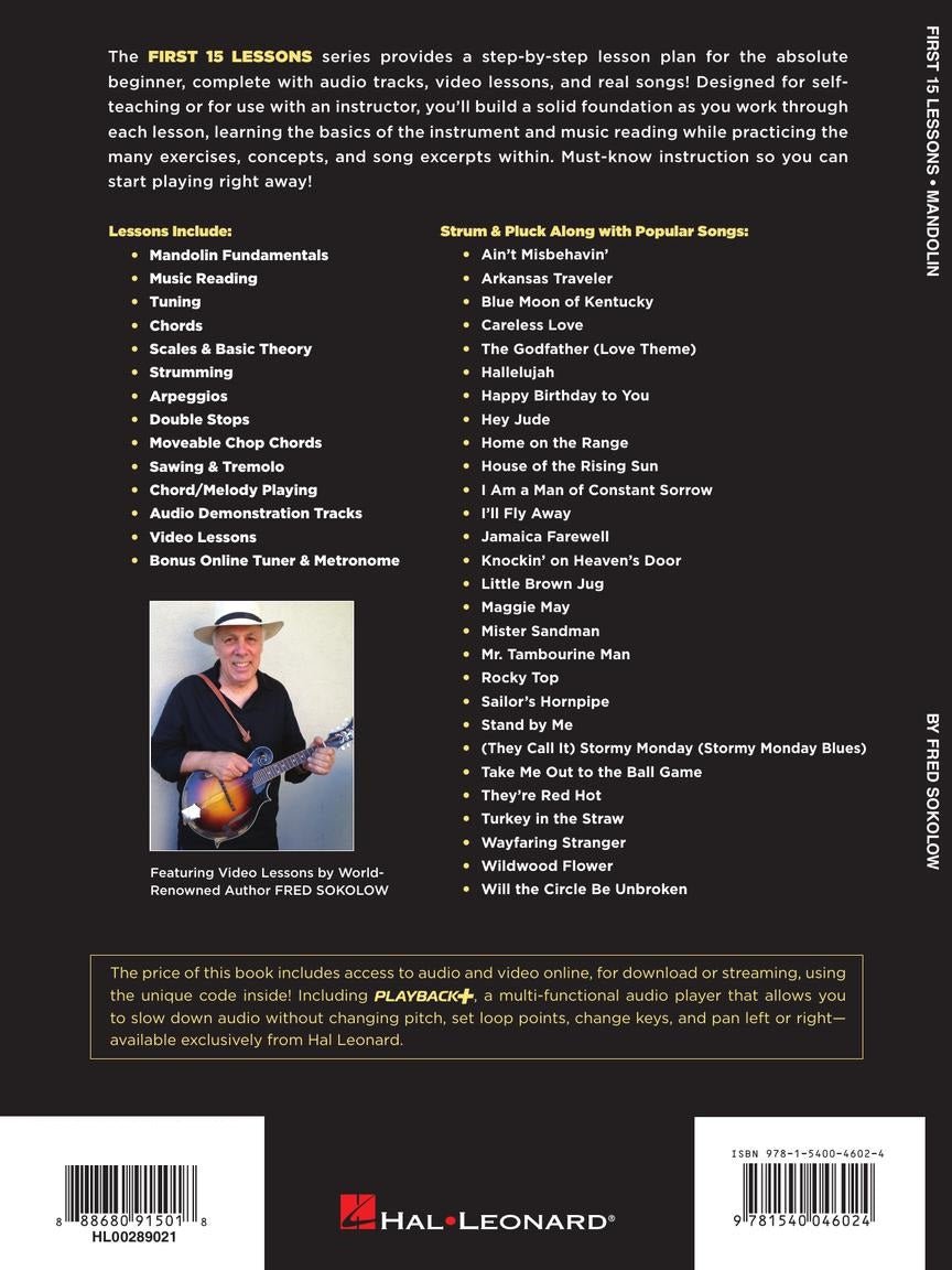 Ce livre sur la mandoline présente des leçons vidéo et imprimées par l'auteur de renommée mondiale Fred Sokolow sur : les principes fondamentaux de la mandoline ; lecture musicale; réglage; accords; échelles et théorie de base ; gratter; arpèges ; arrêts doubles ; accords de hachage mobiles; sciage & trémolo; et jeu d'accords/mélodie. Vous pouvez également gratter et pincer avec 28 chansons, dont : Ain't Misbehavin' • Hallelujah • Hey Jude • I Am a Man of Constant Sorrow • Knockin' on Heaven's Door • Maggie May • Rocky Top • Stand by Me • Wayfaring Stranger • et beaucoup plus.