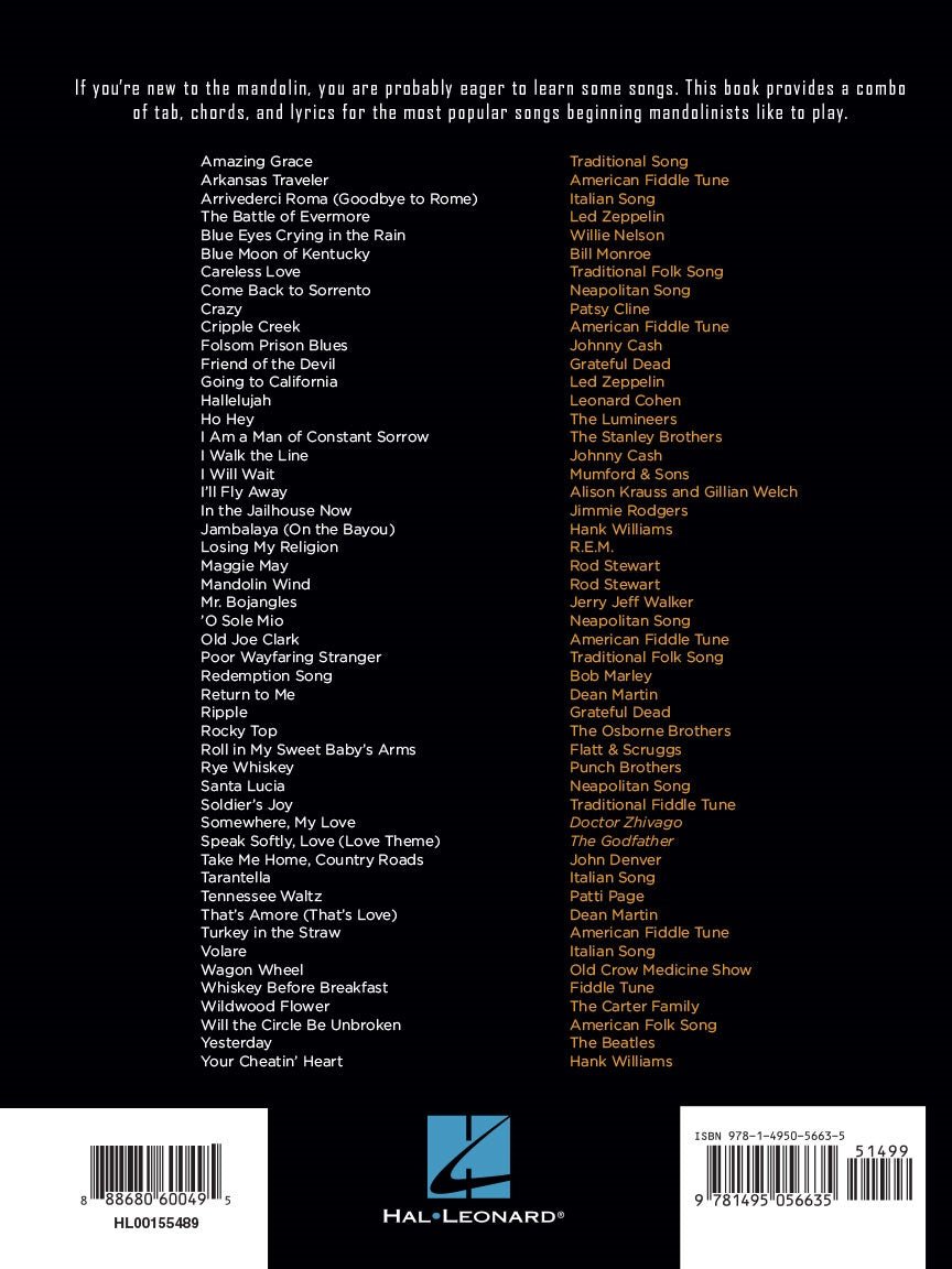 Une collection fantastique de 50 favoris accessibles et incontournables pour le débutant qui a suffisamment appris pour commencer à jouer des chansons populaires ! Ce livre contient une combinaison de tablatures, d'accords et de paroles pour : Amazing Grace • Blue Eyes Crying in the Rain • Crazy • Cripple Creek • Folsom Prison Blues • Friend of the Devil • Going to California • Hallelujah • Ho Hey • I Am a Man of Constant Sorrow • I Walk the Line • I'll Fly Away • Losing My Religion • Maggie May • Mr. Bojangles • Redemption Song • Ripple • Rocky Top • Take Me Home, Country Roads • Tennessee Waltz • Wagon Wheel • Wildwood Flower • Hier • Your Cheatin' Heart • et bien d'autres.