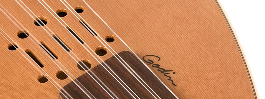 Le Godin MultiOud est accordé (de bas en haut) comme suit : F, A, D, G, C, F.