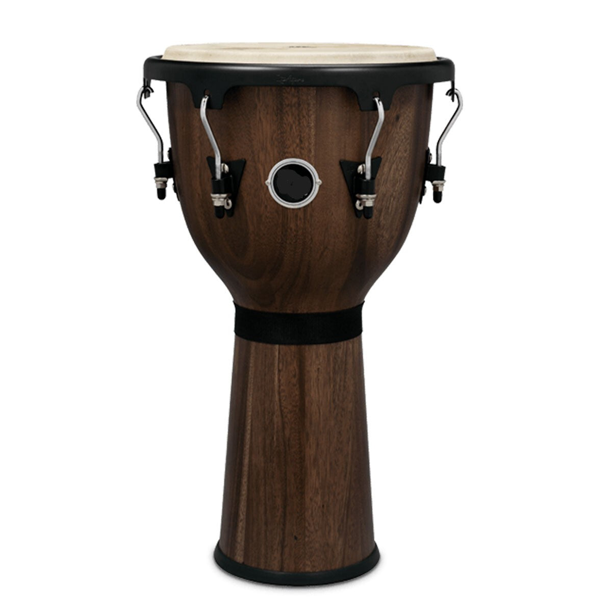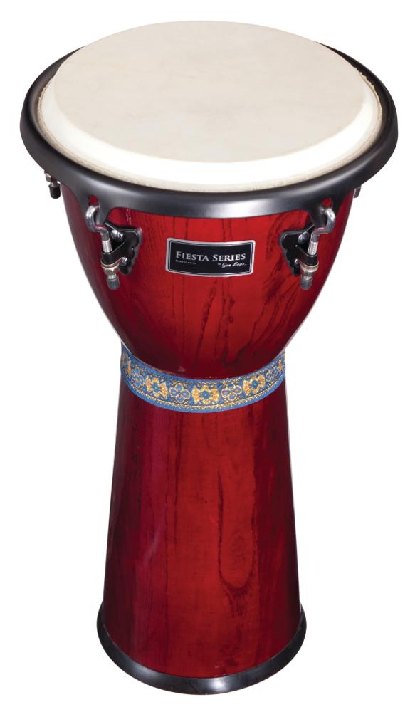 Un instrument incroyablement solide, léger et confortable à jouer. Le ton est clair et corsé, avec beaucoup de profondeur. Les claques aiguës et les notes fermées en sourdine jouées vers le bord offrent tout ce dont vous avez besoin dans un Djembe. Les notes de basse offrent un son profond, plein et très bien projeté qui résonne bien, un contraste parfait avec les notes plus aiguës et plus vives. Un grand anneau de caoutchouc noir solide autour de la base offre une surface stable et antidérapante. Épais et convenablement trapu, c'est un tambour qui durera des années de service - et sonne bien aussi !